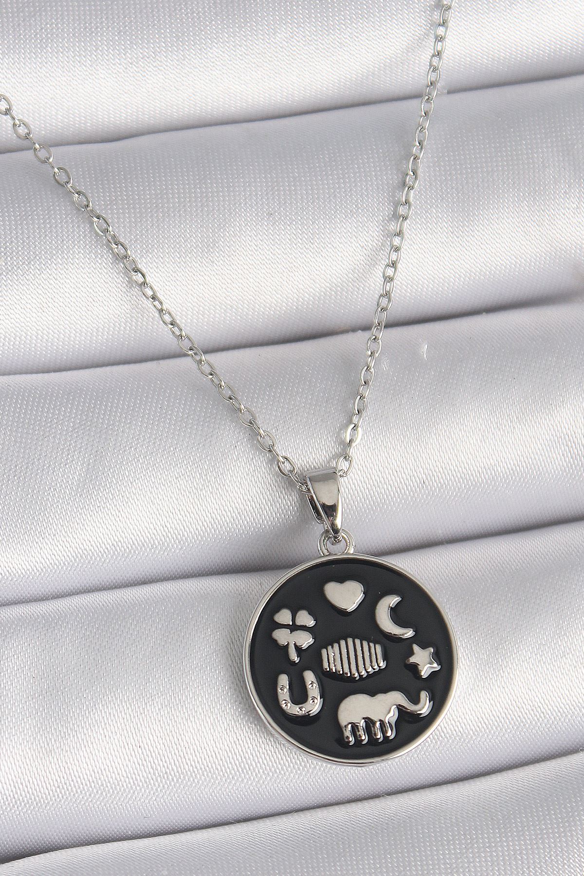 YRTCL 316L Çelik Gümüş Renk Siyah Renk Şans Kolyesi