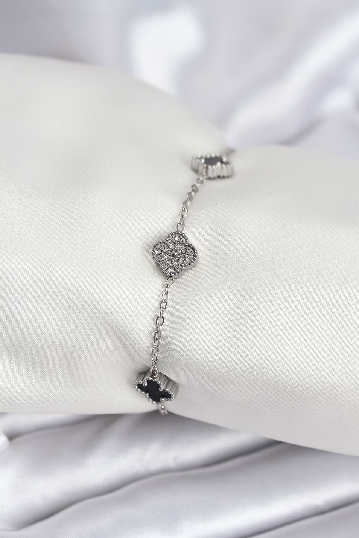 YRTCL 316L Çelik Gümüş Renk Siyah ve Zirkon Taşlı Baby Boy Yonca Kadın Bileklik