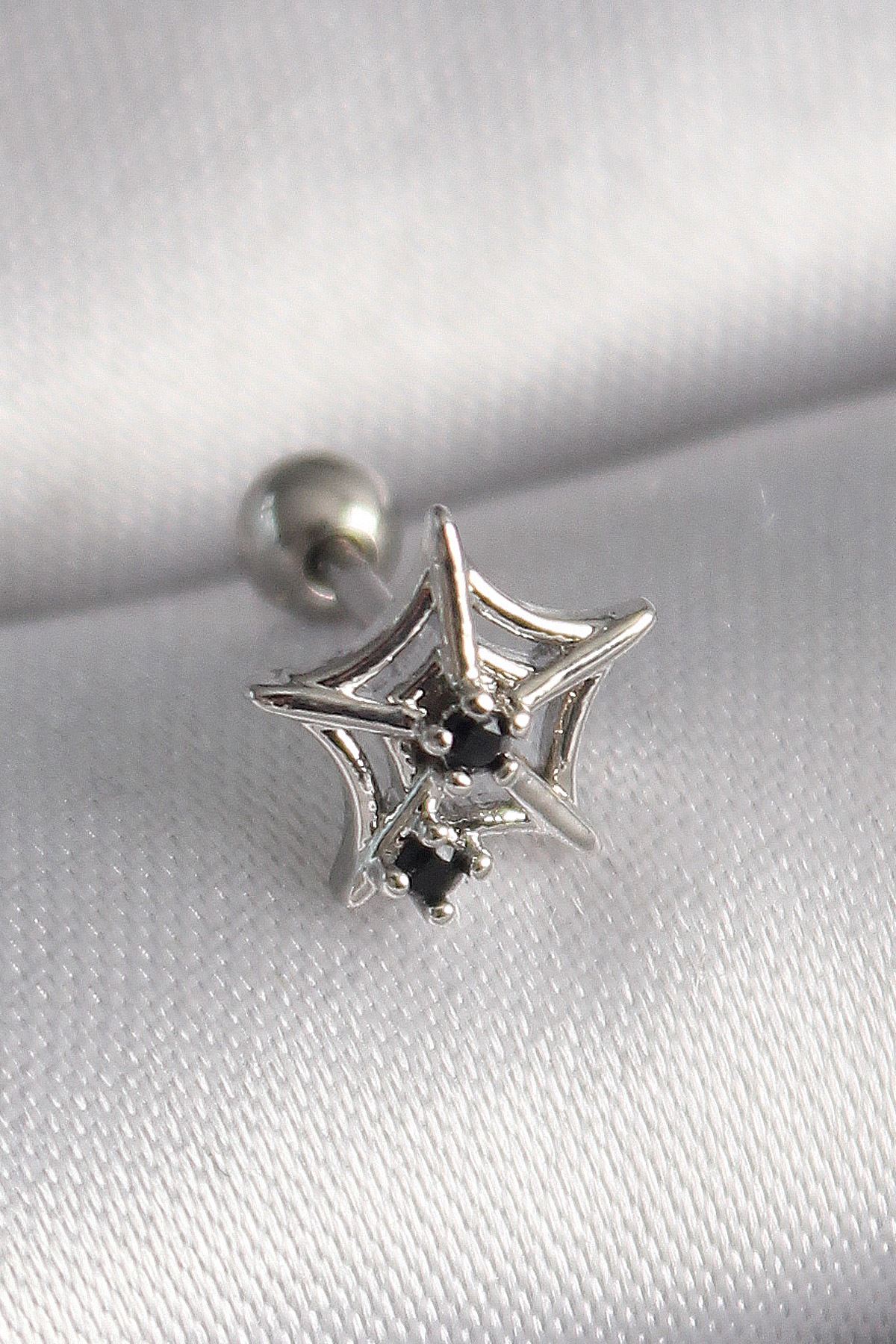 YRTCL 316L Çelik Gümüş Renk Siyah Zirkon Taş Detay Örümcek Ağ Model Tragus Piercing