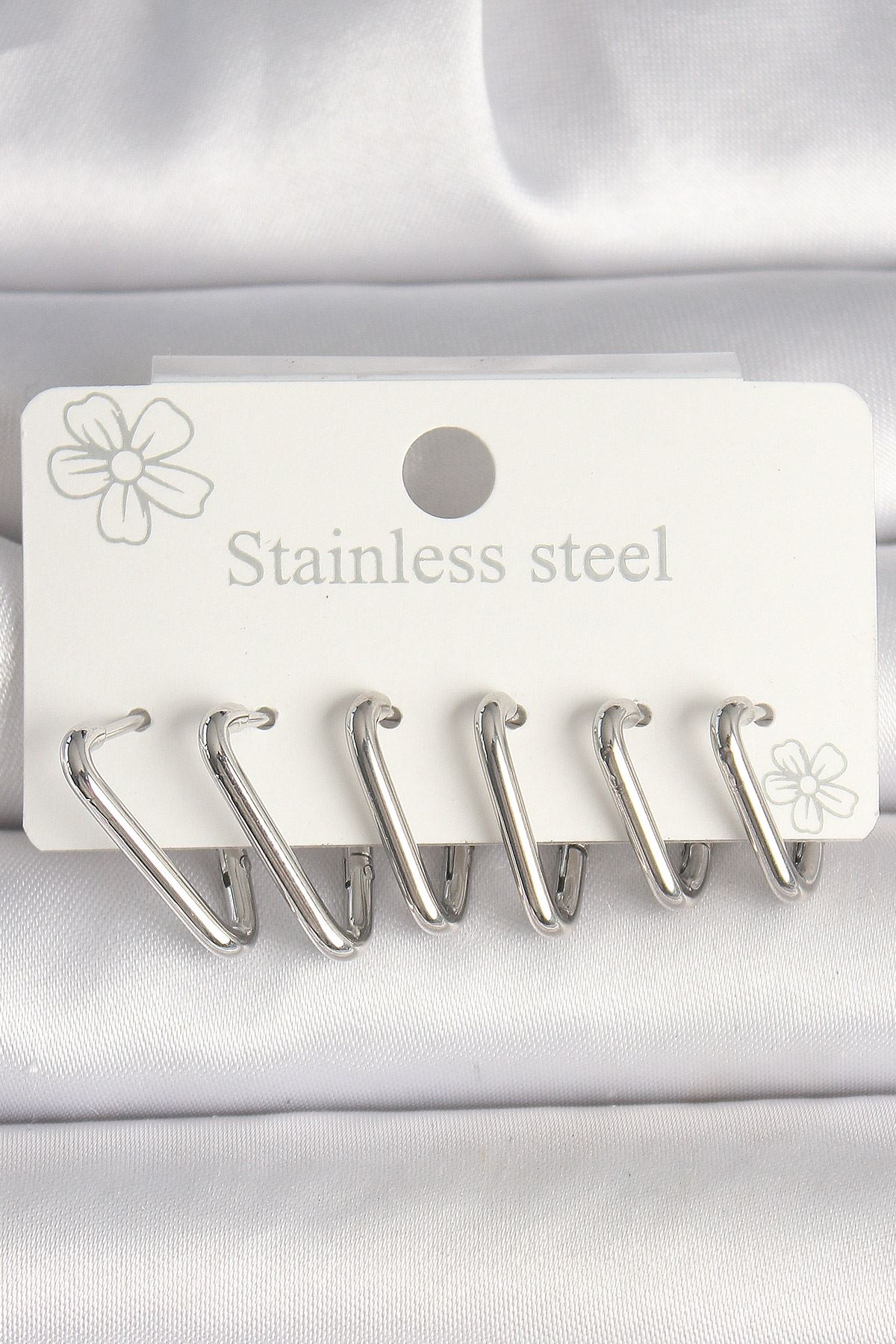 YRTCL 316L Çelik Gümüş Renk Üçgen Model Kadın Küpe Seti