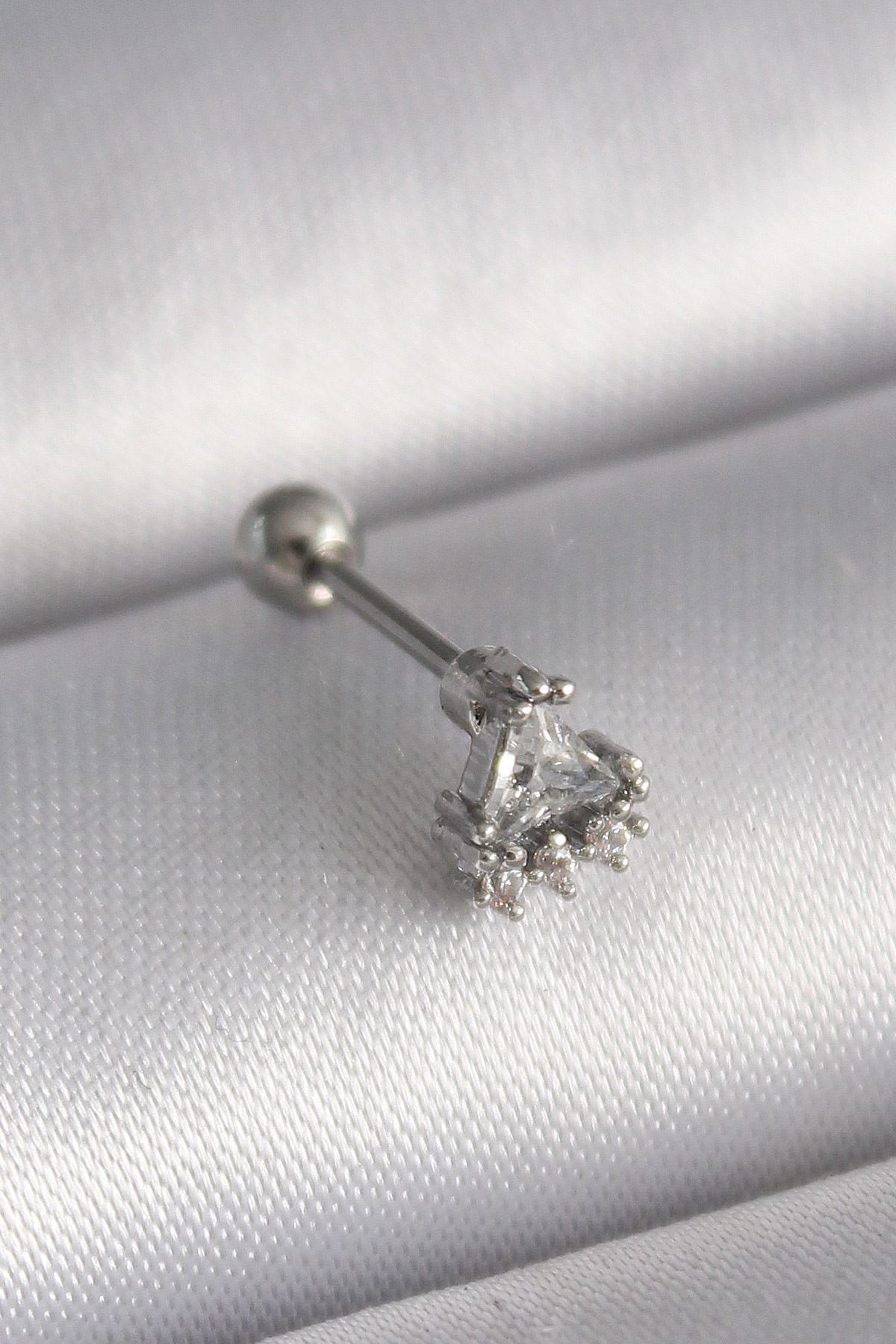 YRTCL 316L Çelik Gümüş Renk Üçgen Zirkon Taşlı Tragus Piercing