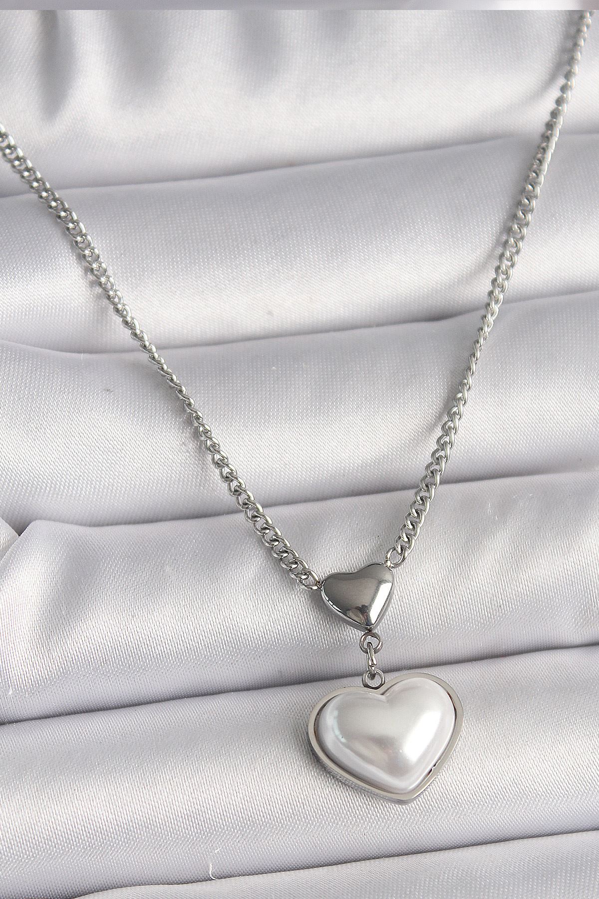 YRTCL 316L Çelik Gümüş Renk Zincir 3D Kalp Model Kadın Kolye