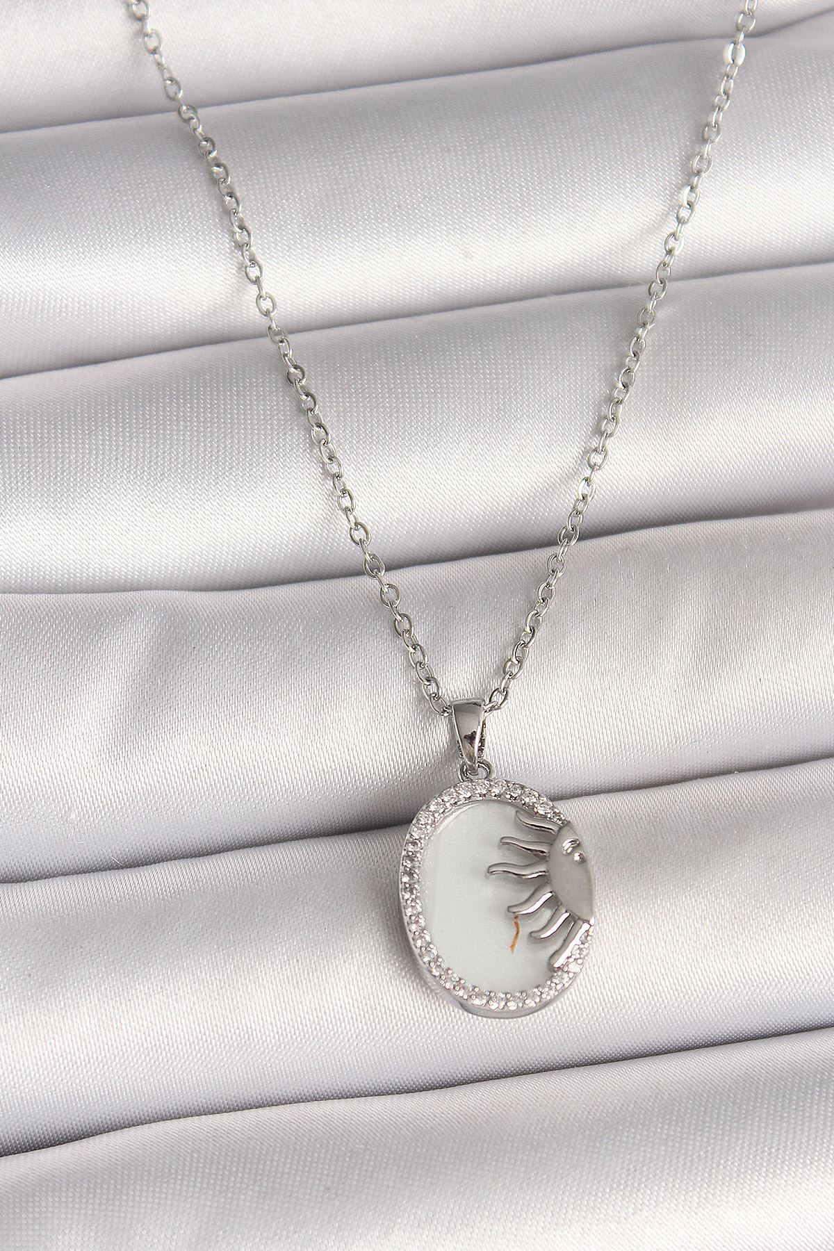 YRTCL 316L Çelik Gümüş Renk Zincir Beyaz Mineli Gün Batımı Model Zirkon Taş Detaylı Kadın Kolye