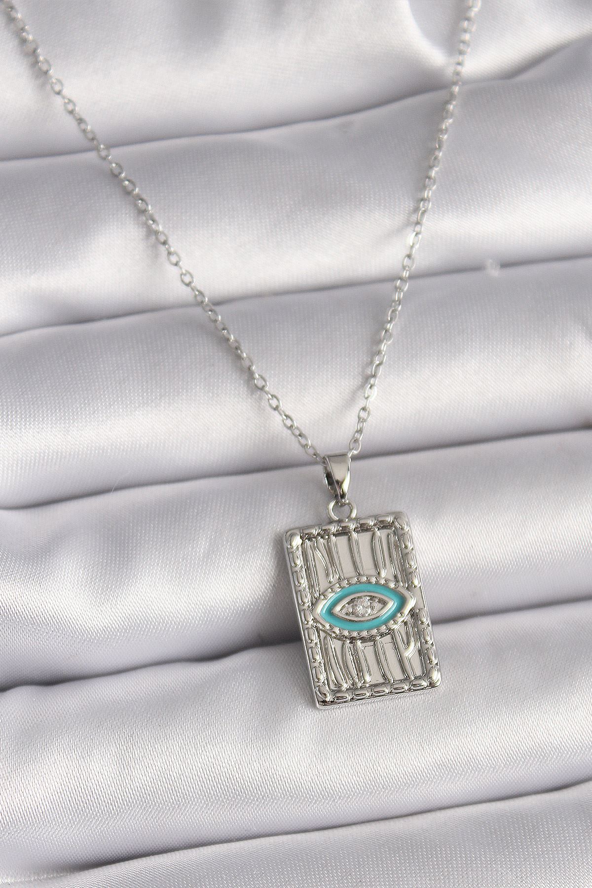 YRTCL 316L Çelik Gümüş Renk Zincir Göz İşlemeli Madalyon Model Kadın Kolye