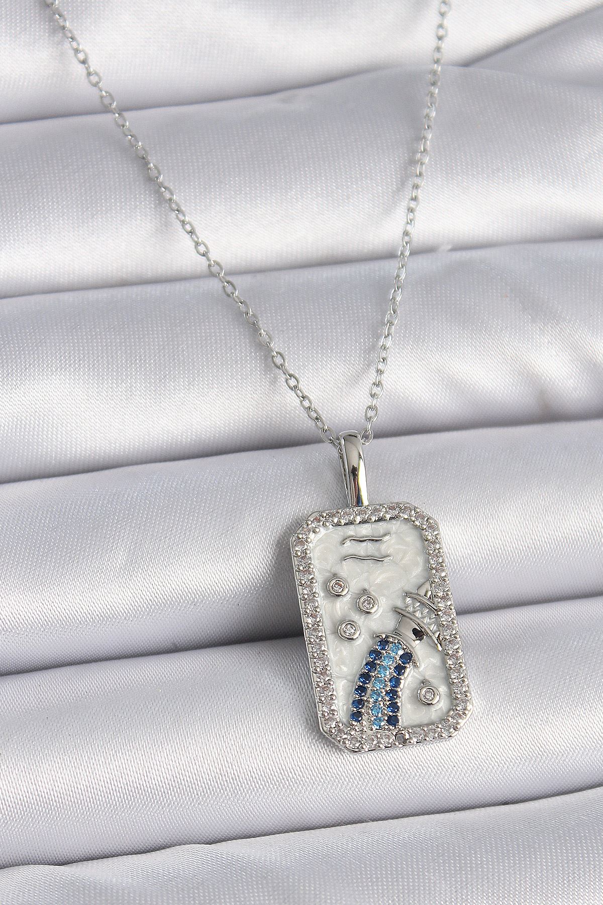 YRTCL 316L Çelik Gümüş Renk Zincir Kova Burcu Zirkon Taşlı Kadın Kolye