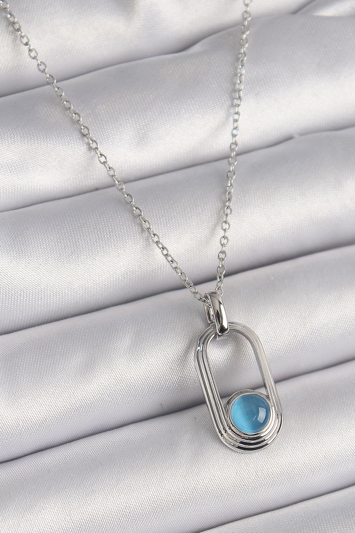 YRTCL 316L Çelik Gümüş Renk Zincir Mavi Kedi Göz Model Kadın Kolye