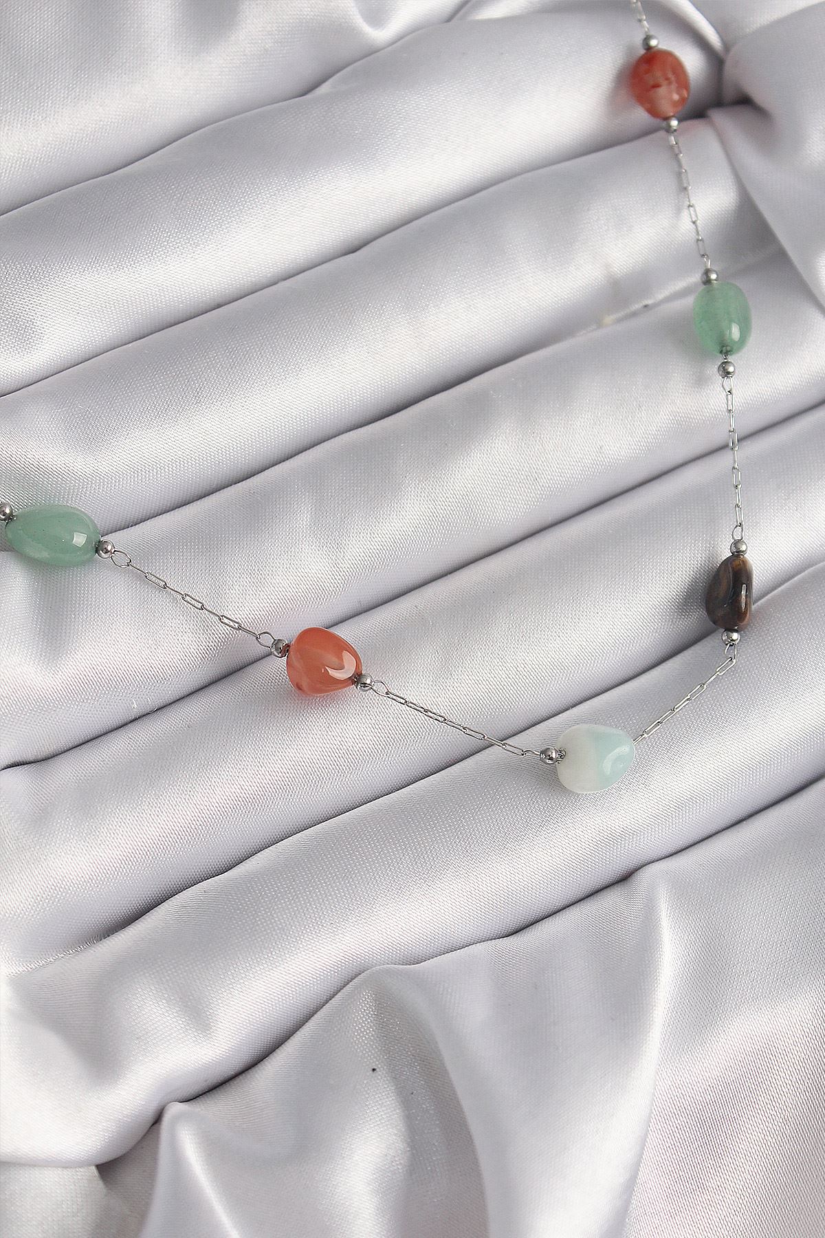 YRTCL 316L Çelik Gümüş Renk Zincir Renkli Doğaltaş Model Kadın Kolye