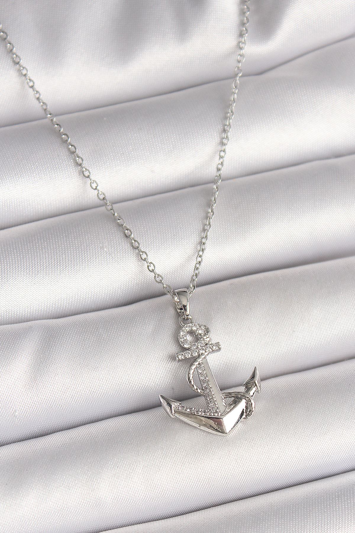 YRTCL 316L Çelik Gümüş Renk Zincir Zirkon Taş Detaylı Çapa Model Kadın Kolye