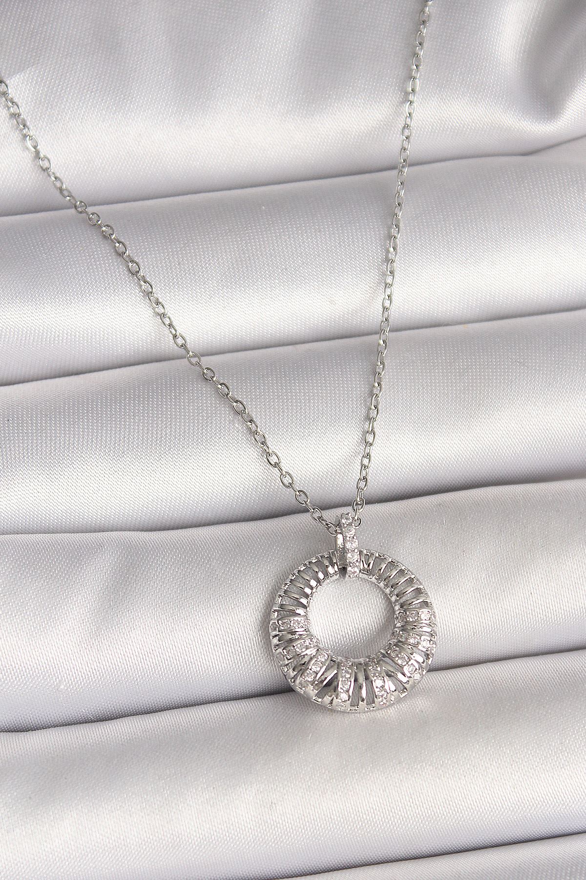 YRTCL 316L Çelik Gümüş Renk Zincir Zirkon Taş İşlemeli Daire Model Kadın Kolye