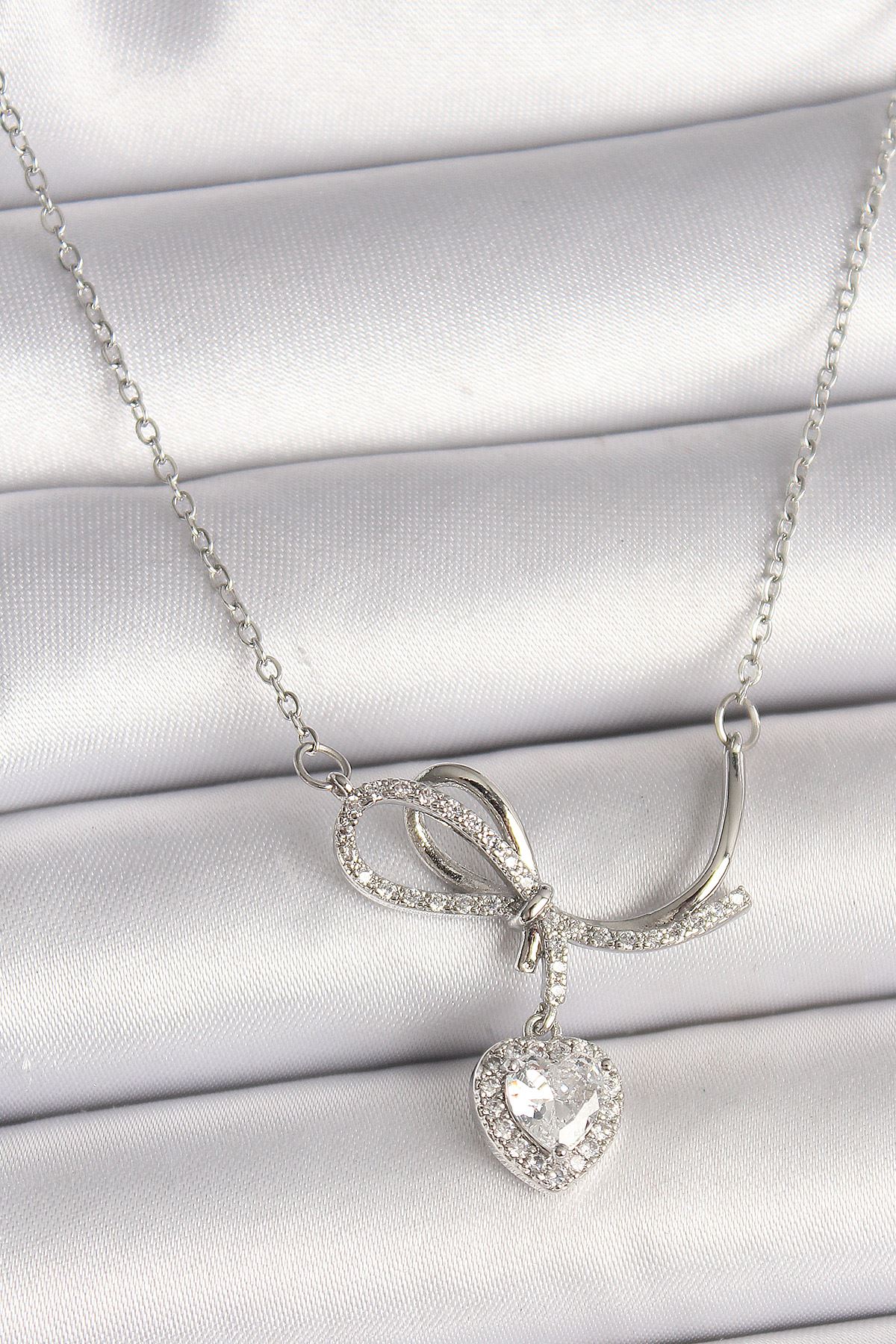 YRTCL 316L Çelik Gümüş Renk Zincir Zirkon Taşlı Düğüm Sallantı Kalp Figür Kadın Kolye
