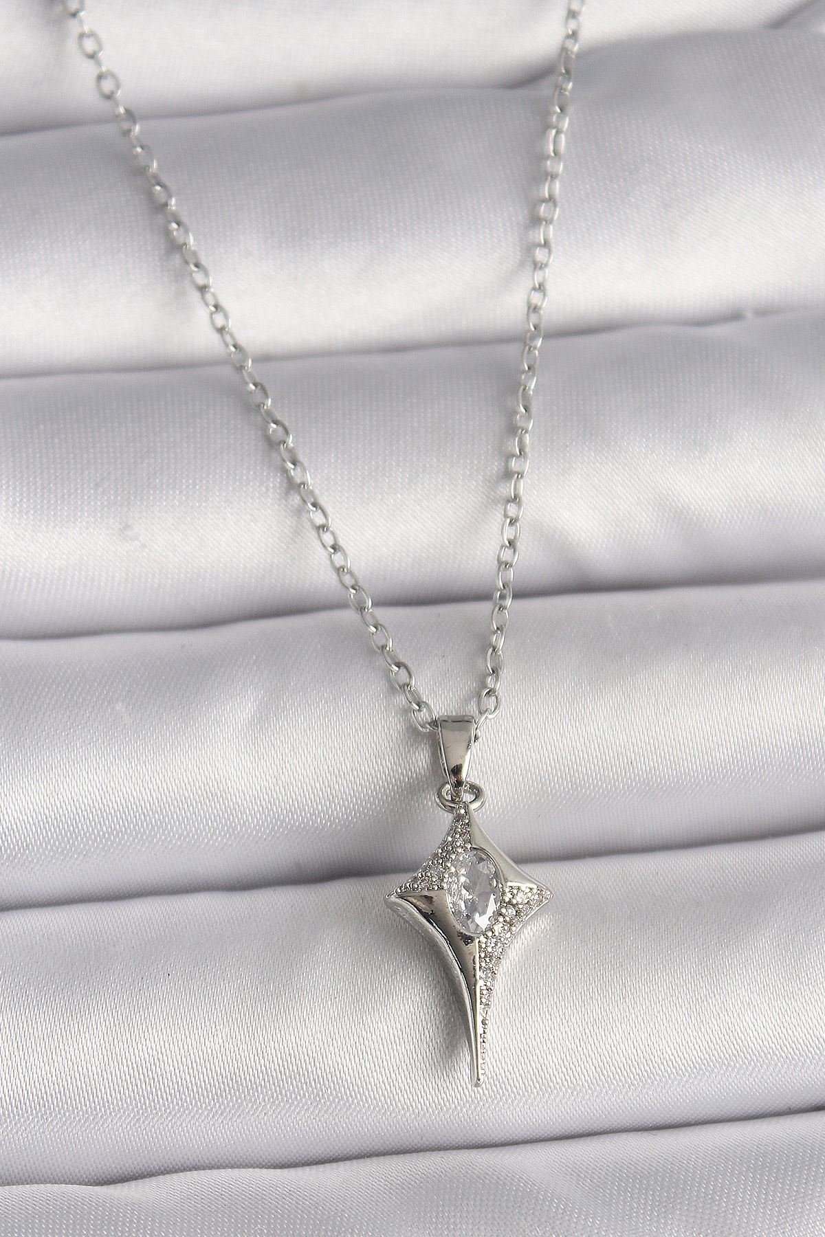 YRTCL Pirinç Gümüş Renk Zirkon Taşlı Kutup Yıldızı Model Kadın Kolye