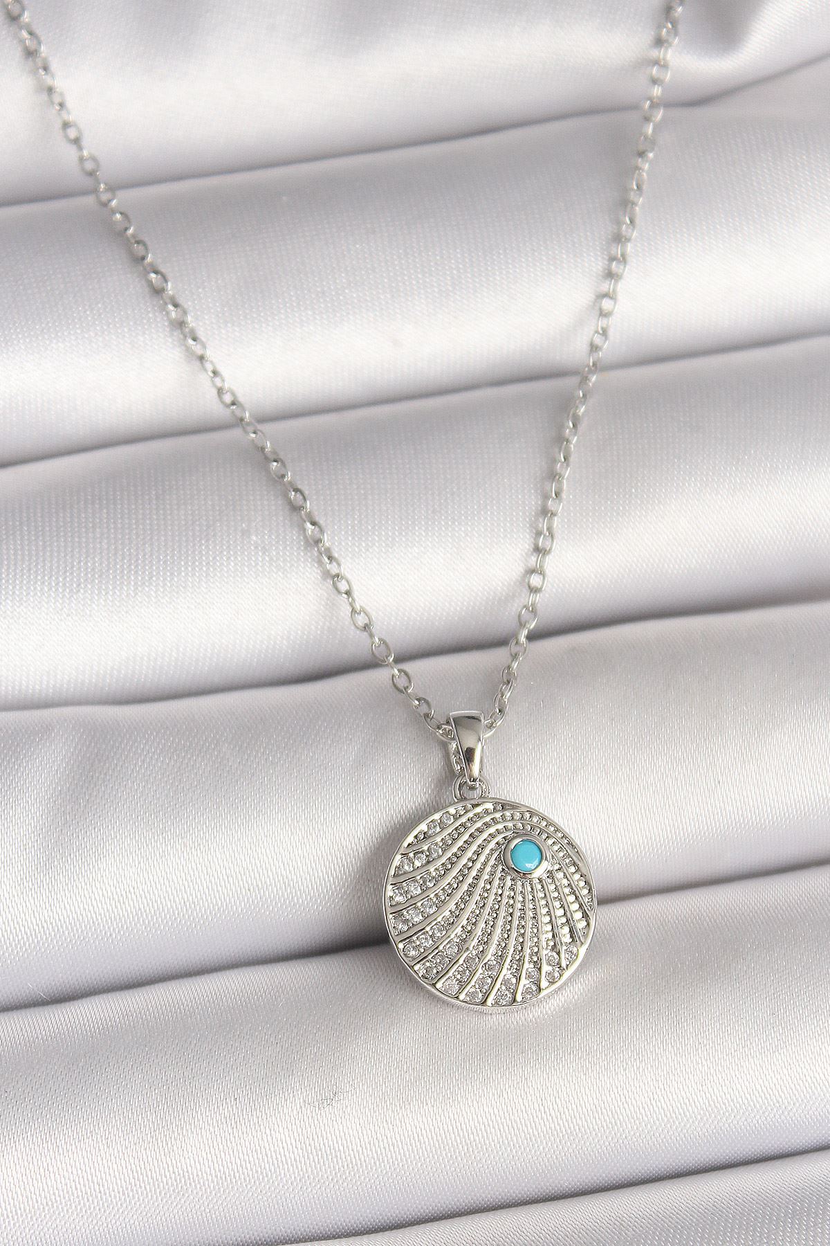 YRTCL 316L Çelik Gümüş Renk Zincir Zirkon Taşlı Mavi Taş Detaylı Madalyon Model Kadın Kolye