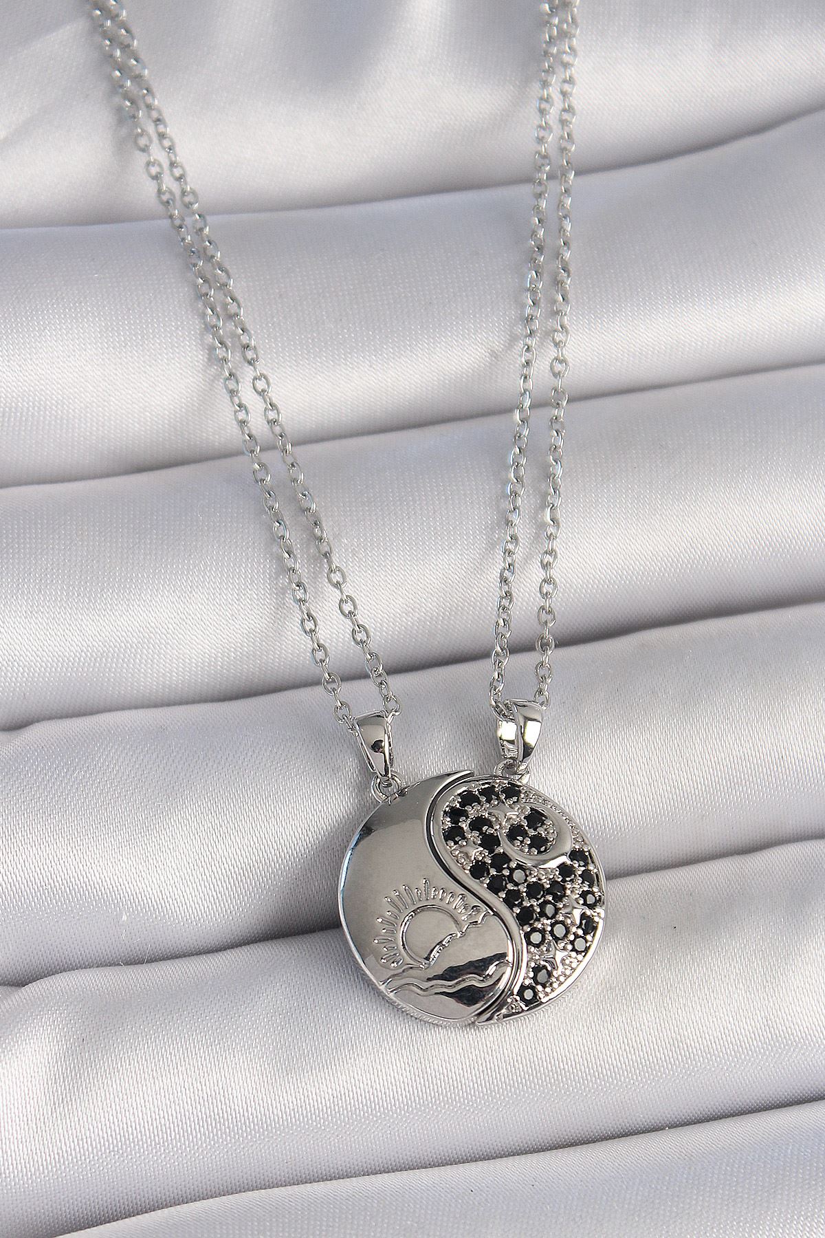 YRTCL 316L Çelik Gümüş Renk Zincir Zirkon Taşlı Ying Yang Model Gün Batımı İşlemeli Arakdaşlık Kadın Kolye