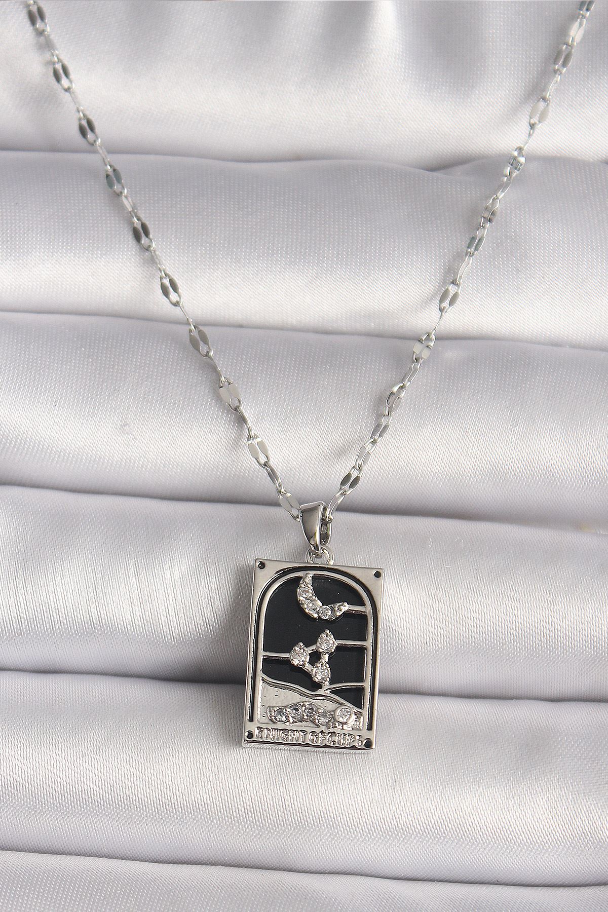 YRTCL 316L Çelik Gümüş Renk Zirkon Taşlı Ay Figürlü Taror Model Kadın Kolye