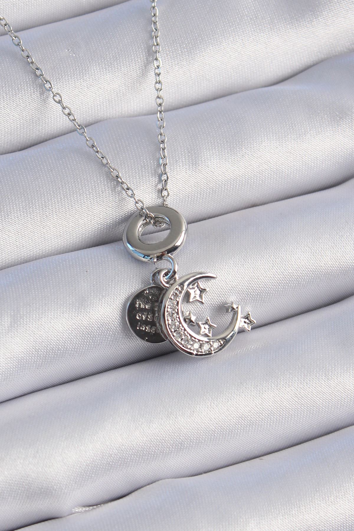 YRTCL Pirinç Zirkon Taşlı Yıldız Ve Ay Model Gümüş Renk Kadın Kolye