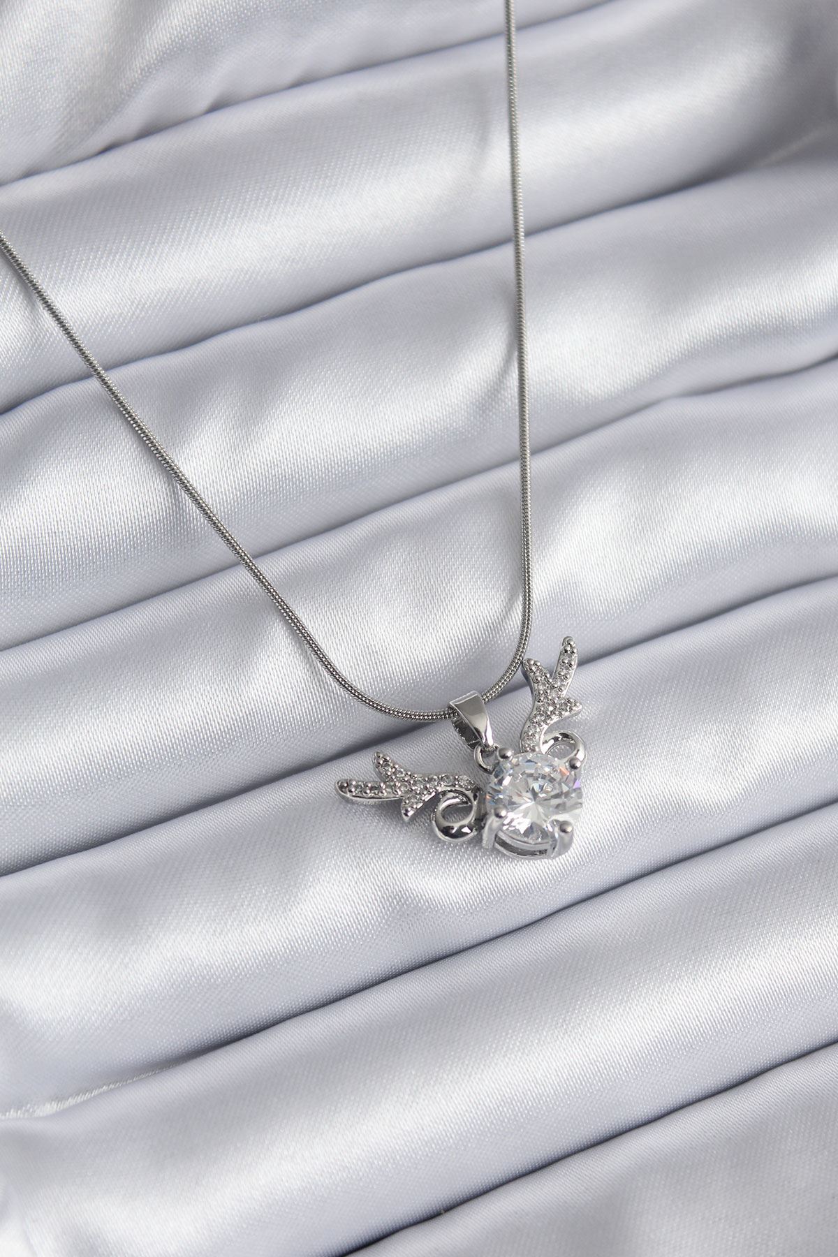 YRTCL 316L Çelik Gümüş Renk Zirkon Taşlı Boynuz Model Kadın Kolye