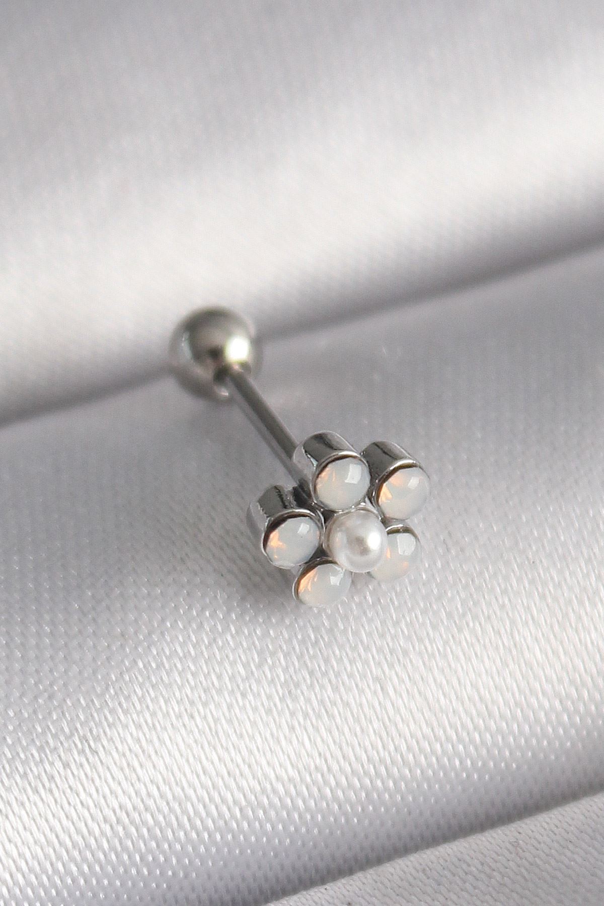 YRTCL 316L Çelik Gümüş Renk Zirkon Taşlı Çiçek Model Tragus Piercing