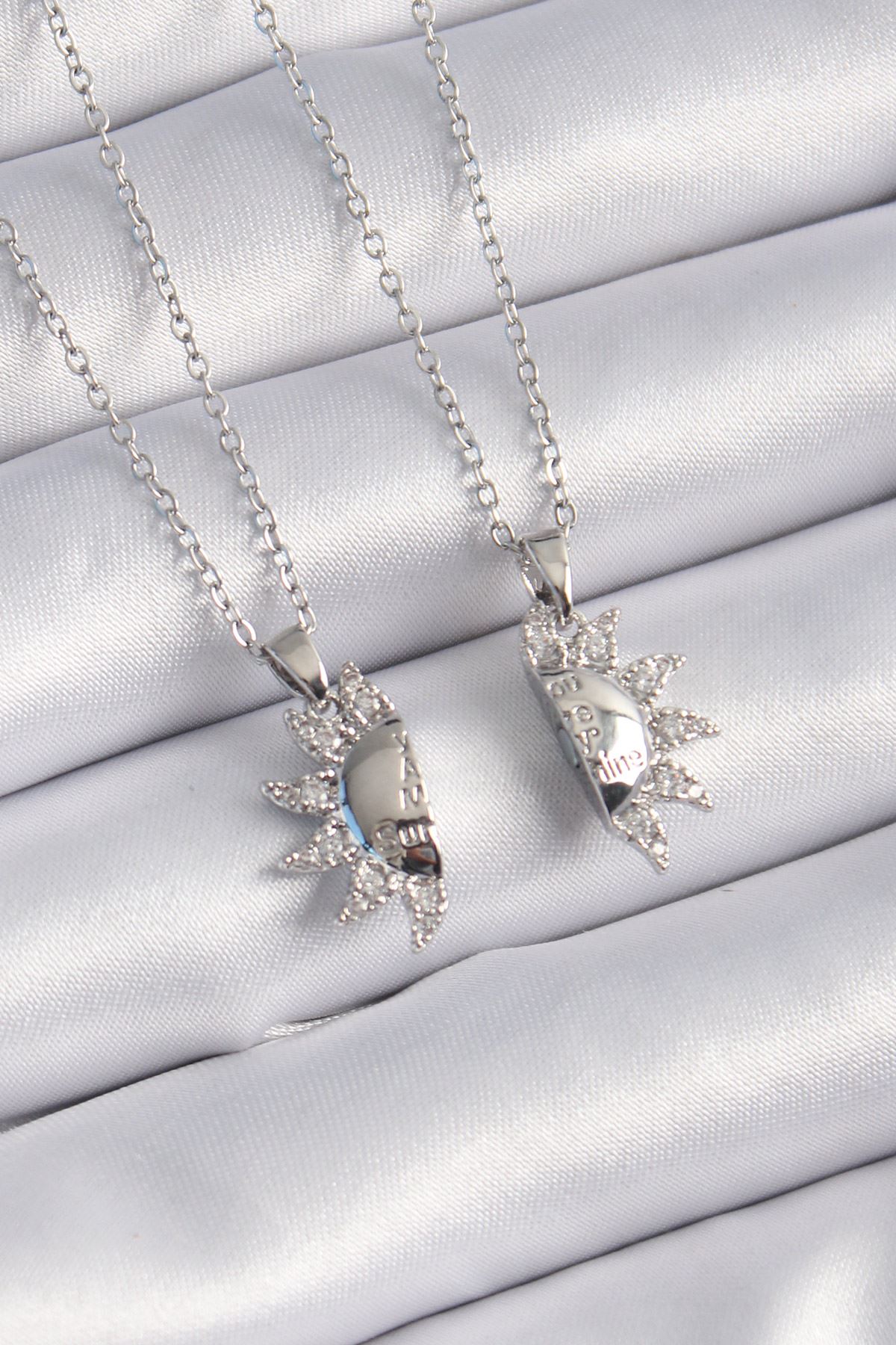 YRTCL 316L Çelik Gümüş Renk Zirkon Taşlı Güneş Model İşleme Yazı Detay Arkadaşlık Kolyesi