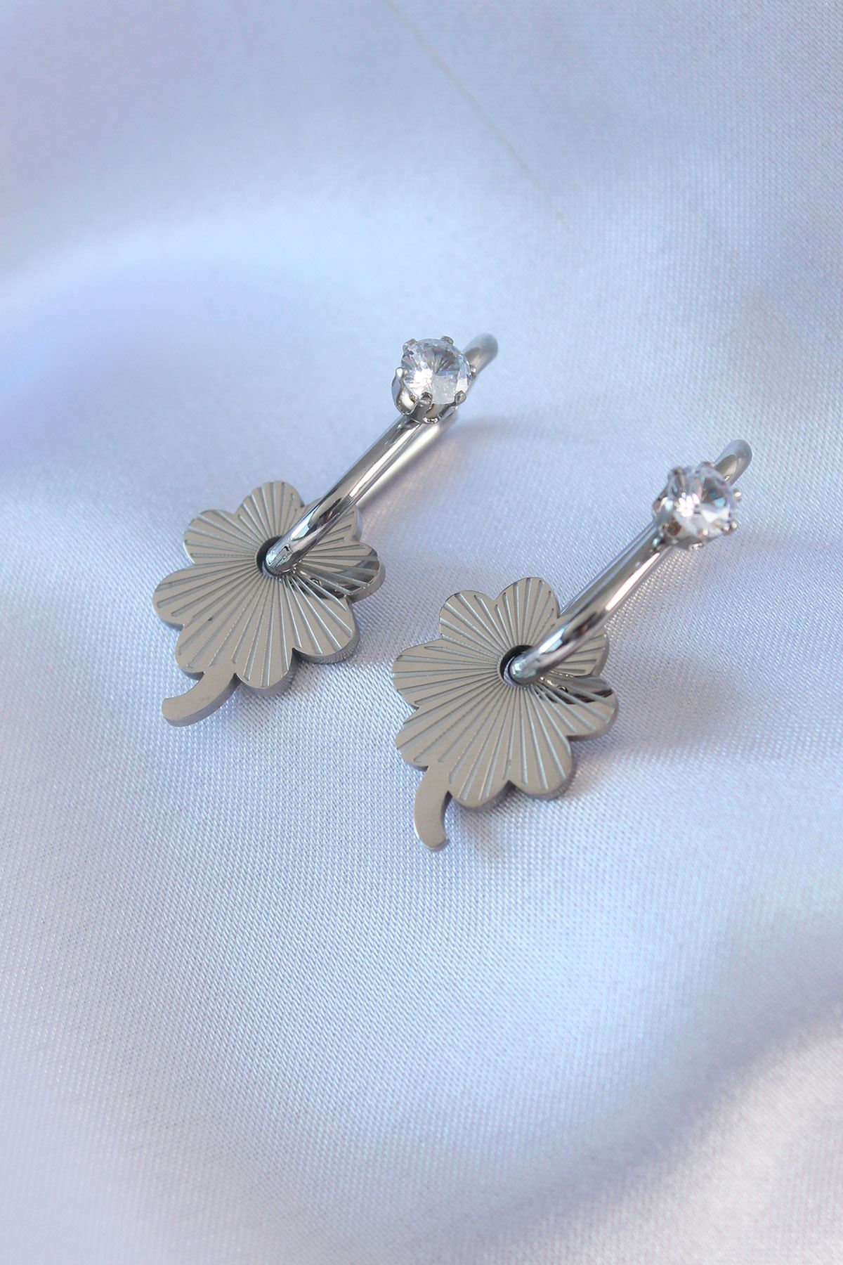YRTCL 316L Çelik Gümüş Renk Zirkon Taşlı Kadın Göçmen Küpesi