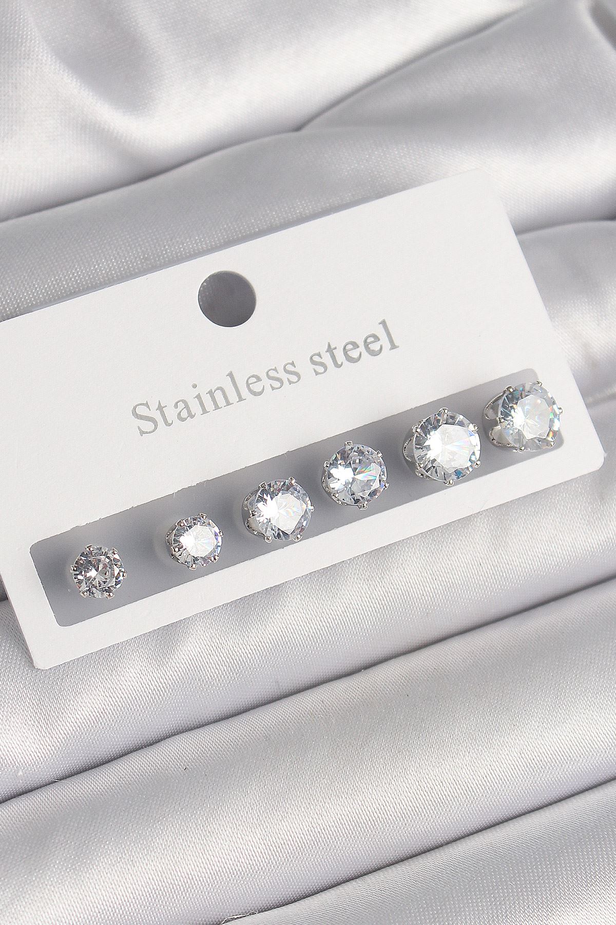 YRTCL 316L Çelik Gümüş Renk Zirkon Taşlı Kadın Küpe Seti