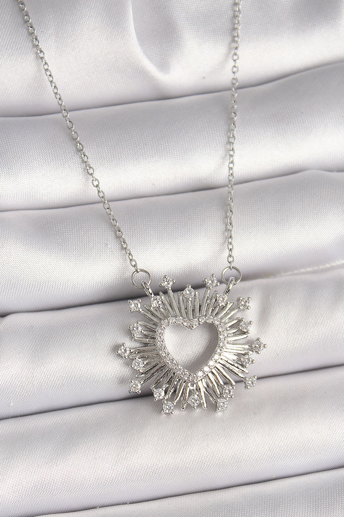 YRTCL 316L Çelik Gümüş Renk Zirkon Taşlı Kalp Model Kadın Kolye