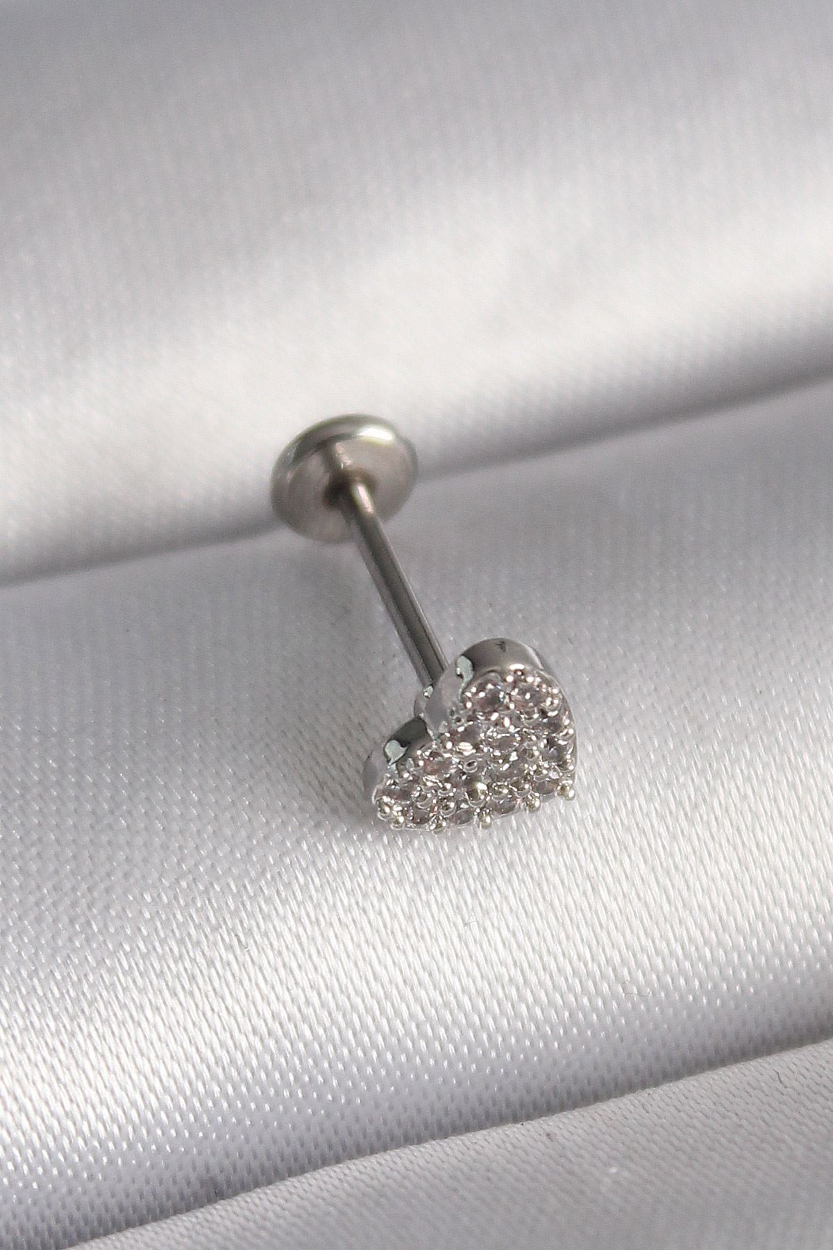 YRTCL 316L Çelik Gümüş Renk Zirkon Taşlı Kalp Model Tragus Piercing