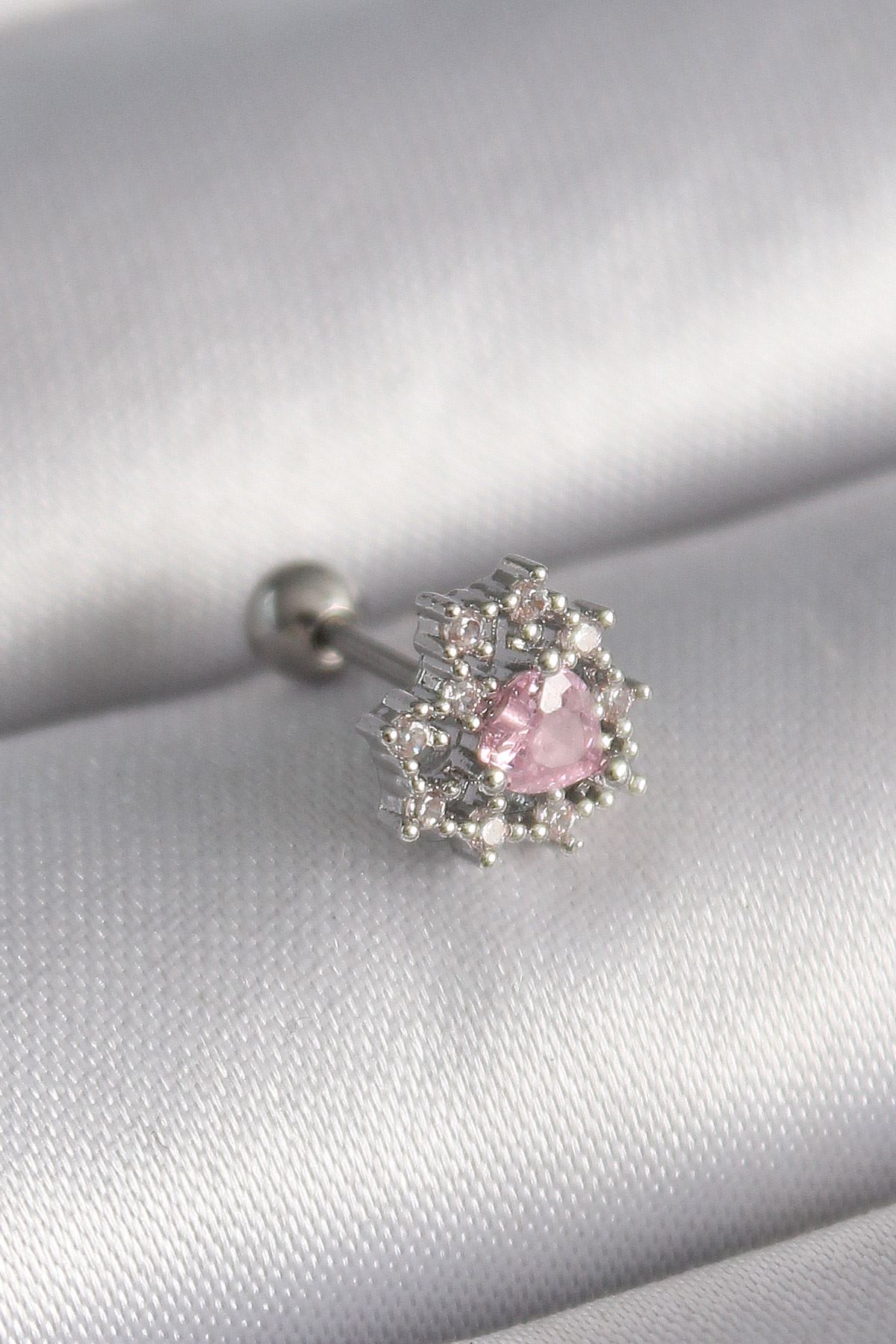 YRTCL 316L Çelik Gümüş Renk Zirkon Taşlı Kalp Tragus Piercing