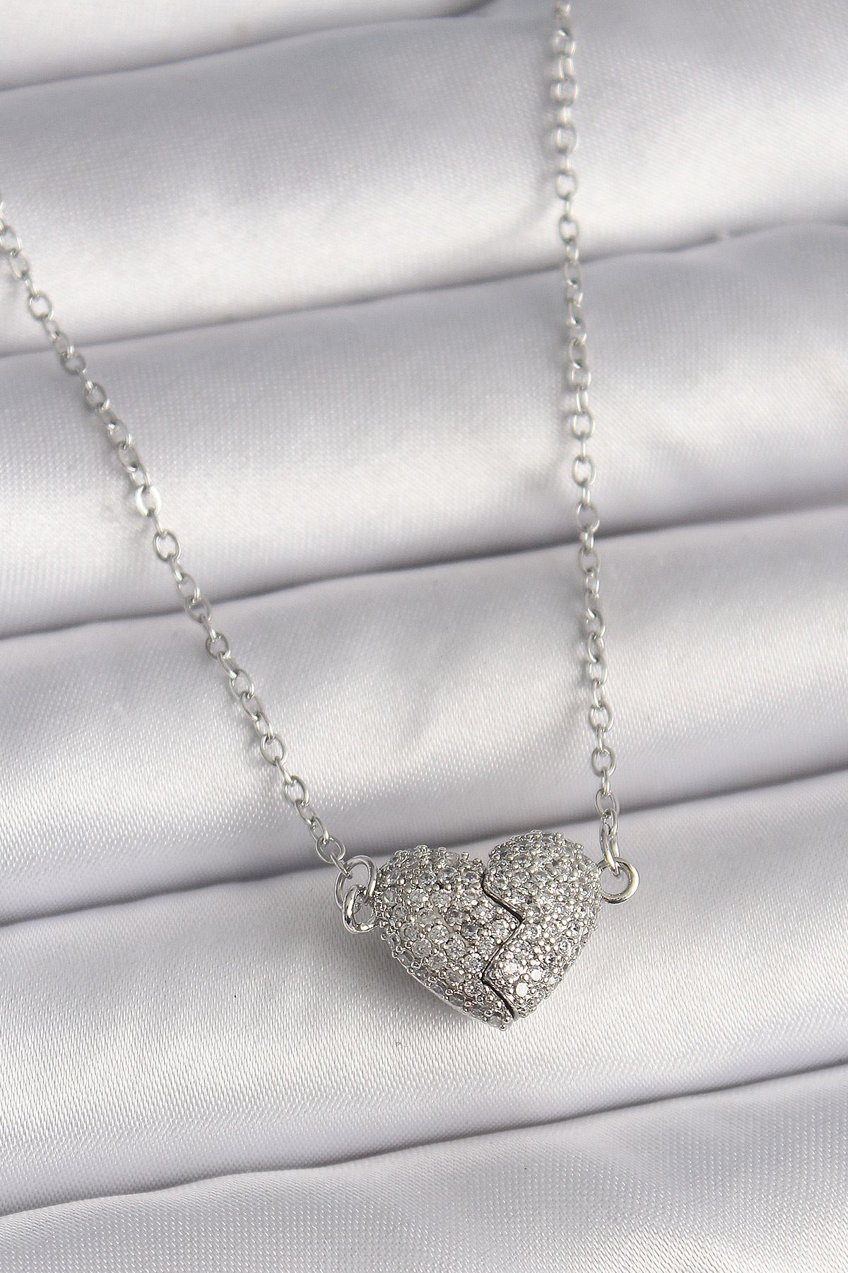 YRTCL 316L Çelik Gümüş Renk Zirkon Taşlı Mıknatıslı Kalp Model Kadın Kolye
