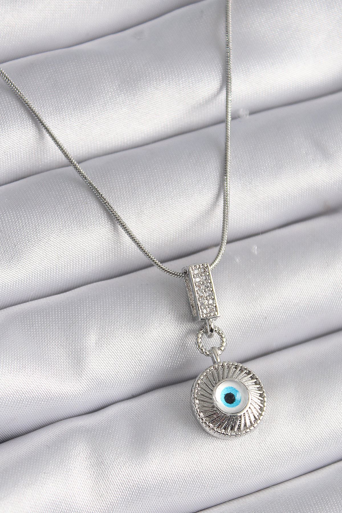 YRTCL 316L Çelik Gümüş Renk Zirkon Taşlı Nazar Boncuk Model Kadın Kolye
