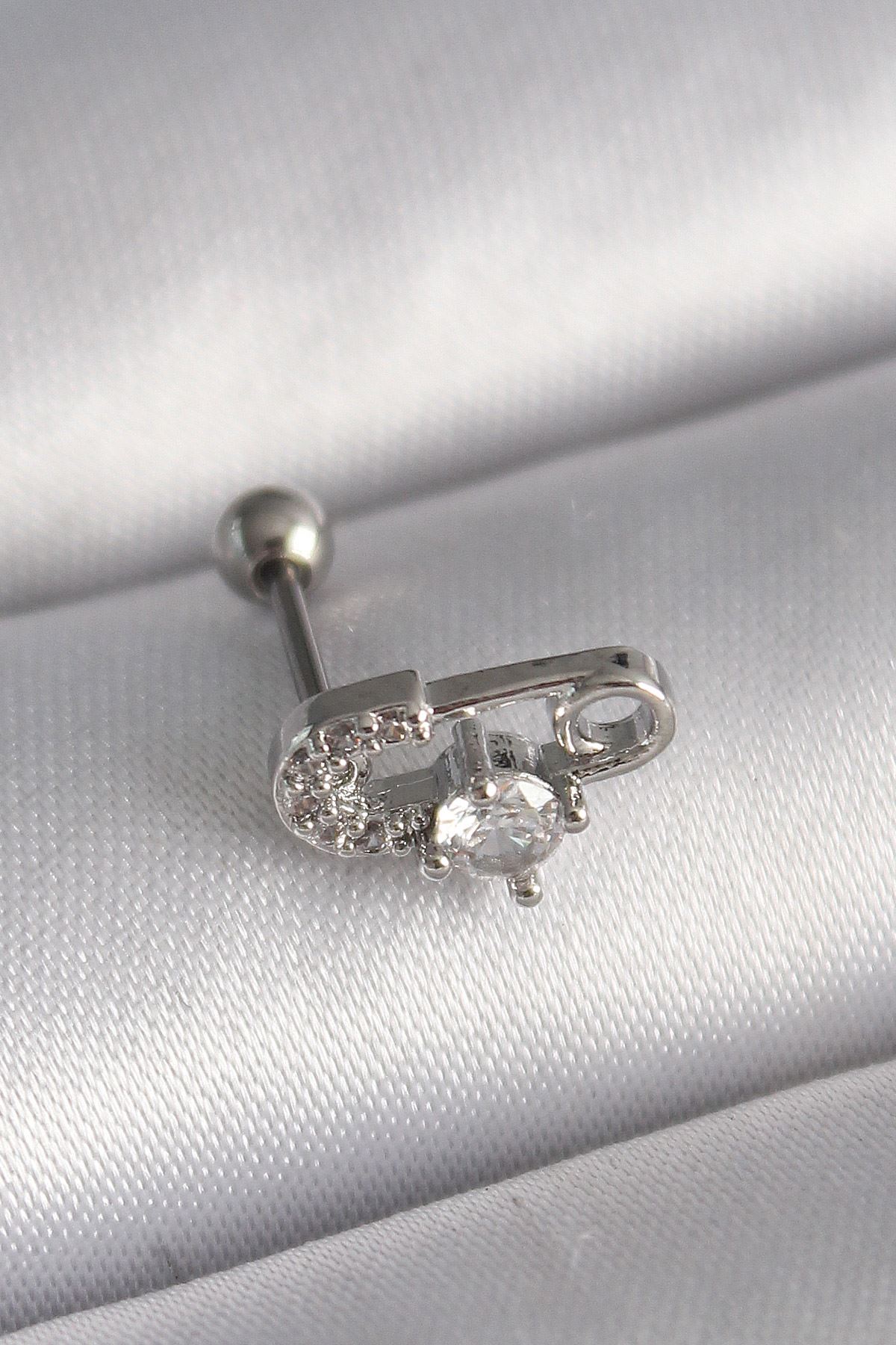 YRTCL 316L Çelik Gümüş Renk Zirkon Taşlı Toplu İğne Tragus Piercing