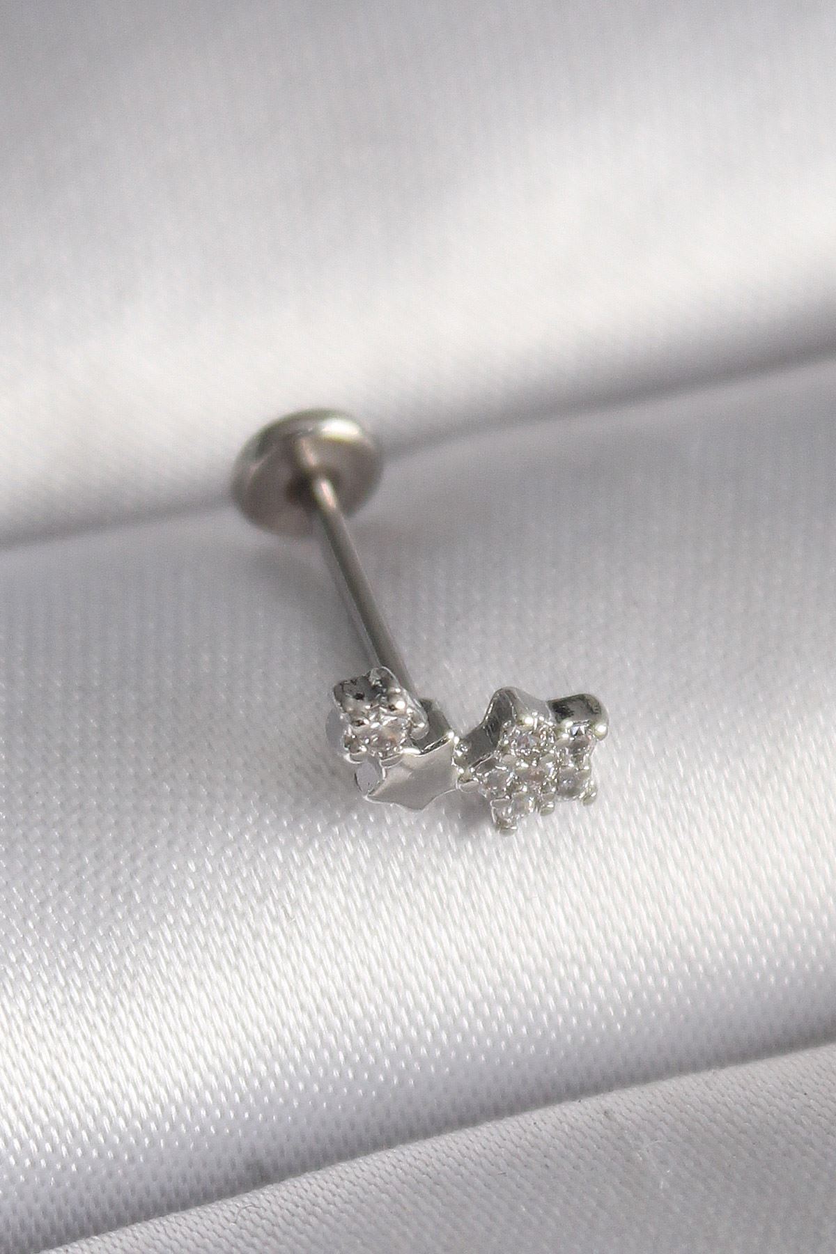 YRTCL 316L Çelik Gümüş Renk Zirkon Taşlı Yıldız Model Tragus Piercing