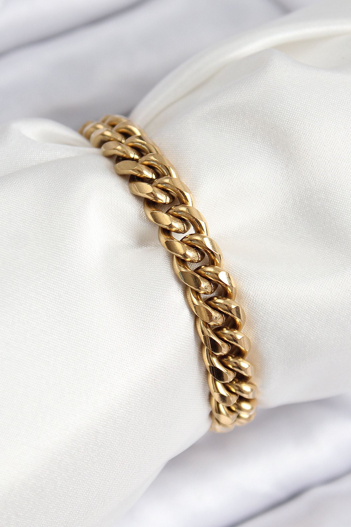 YRTCL 316L Çelik Klasik Kalın Zincir Model Gold Renk Kadın Bileklik