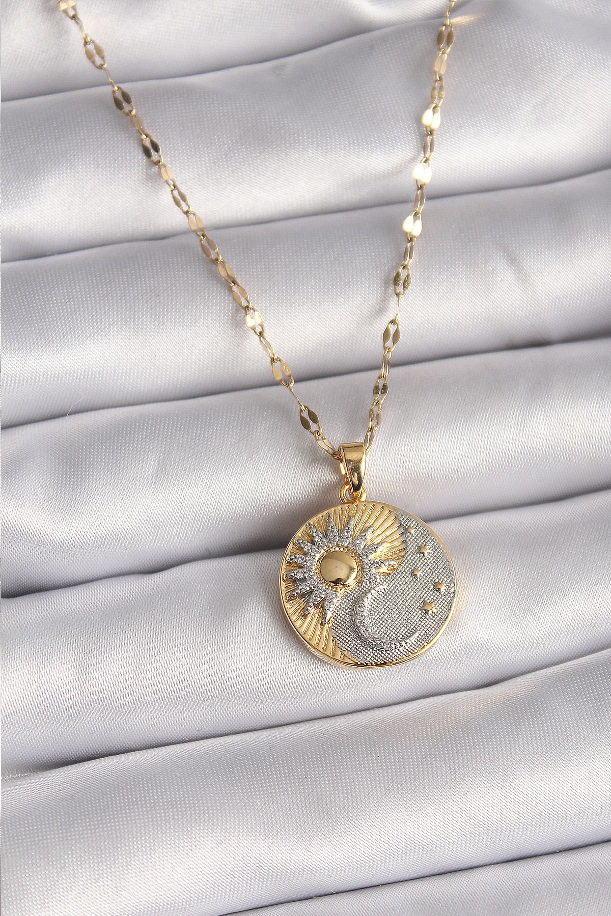 YRTCL 316L Çelik Mix Renk Zincir Zirkon Taşlı Gün Doğumu/Batımı Madalyon Model Kadın Kolye