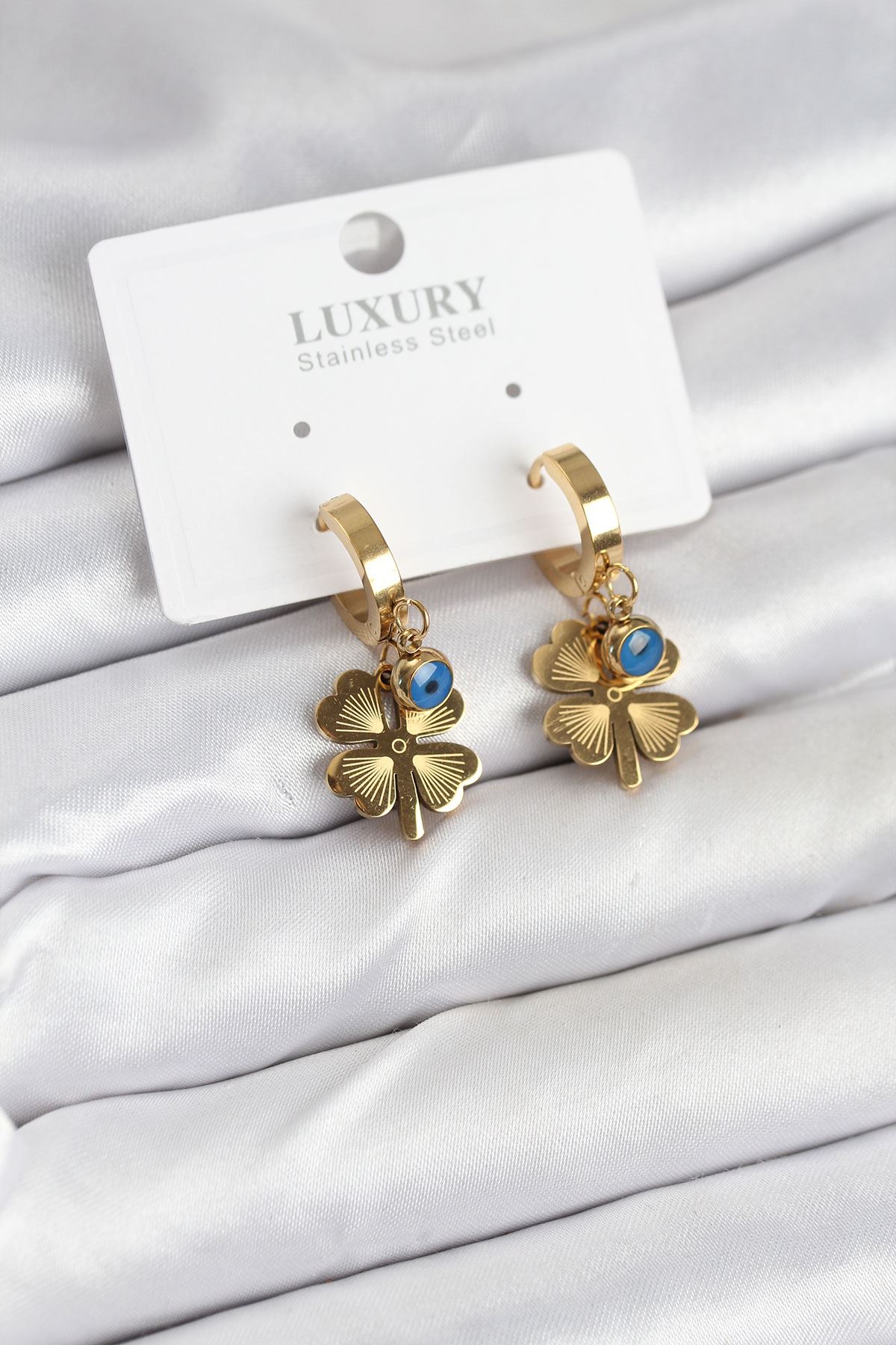 YRTCL 316L Çelik Nazarlı Yonca Model Kadın Küpe