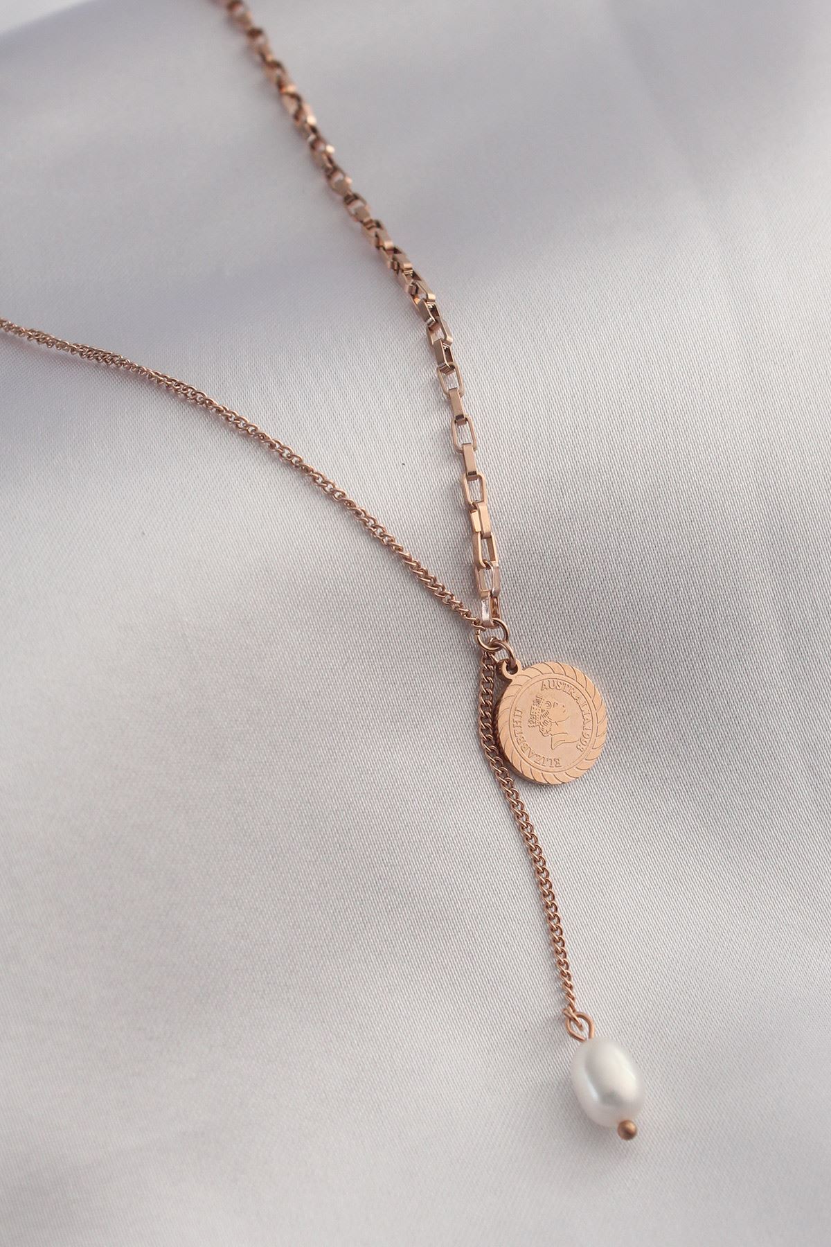 YRTCL 316L Çelik Rose Renk İşlemeli Sallantılı Kadın Kolye