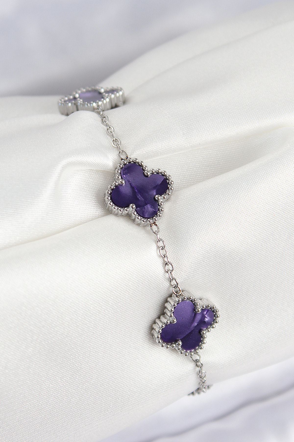 YRTCL 316L Çelik Sedefli Mor Gümüş Renk Yonca Kadın Bileklik