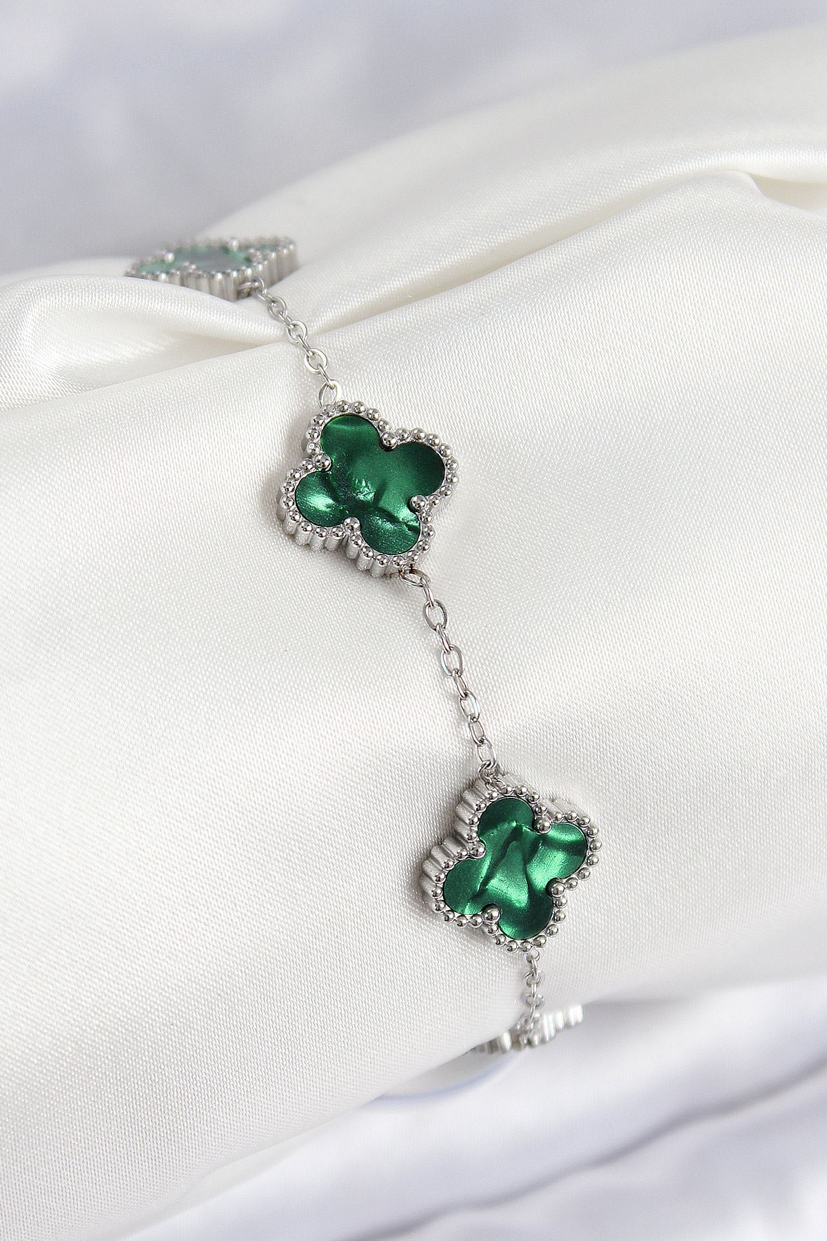 YRTCL 316L Çelik Sedefli Zümrüt Yeşil Gümüş Renk Yonca Kadın Bileklik