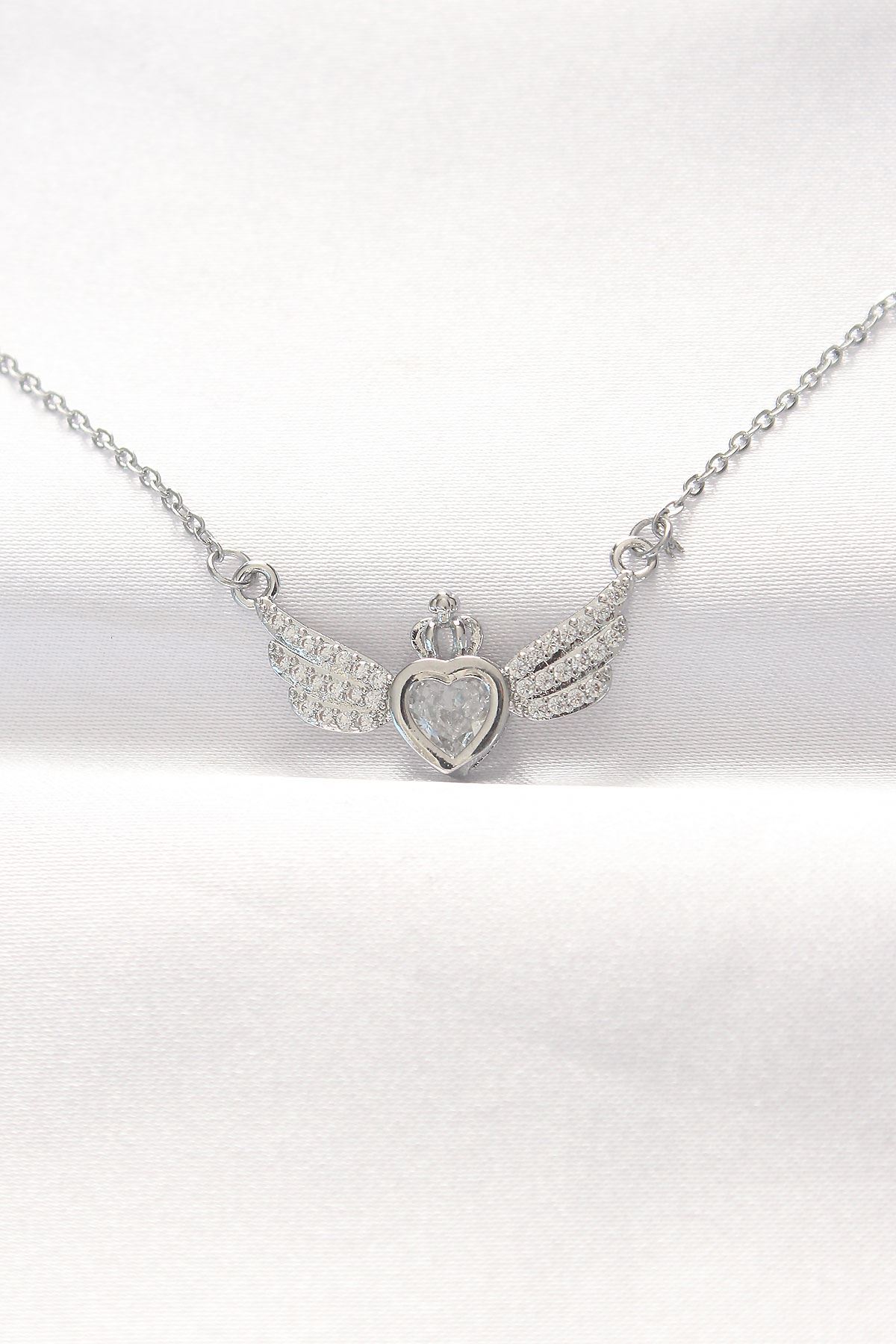 YRTCL 316L Çelik Silver Renk Zirkon Taşlı Kalpli Kanat Kolye
