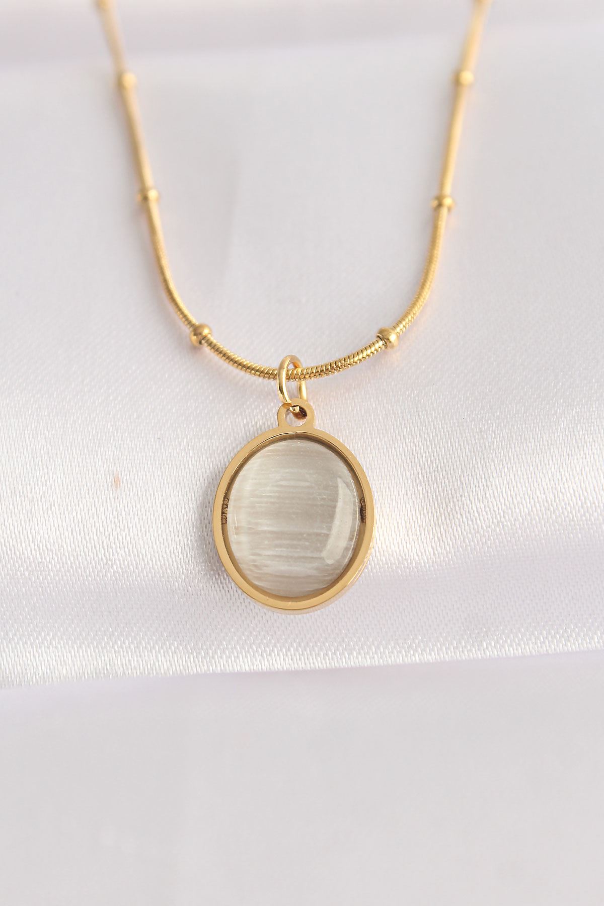 YRTCL 316L Çelik Zincir Altın Renk Gri Sedefli Oval Figürlü Kolye