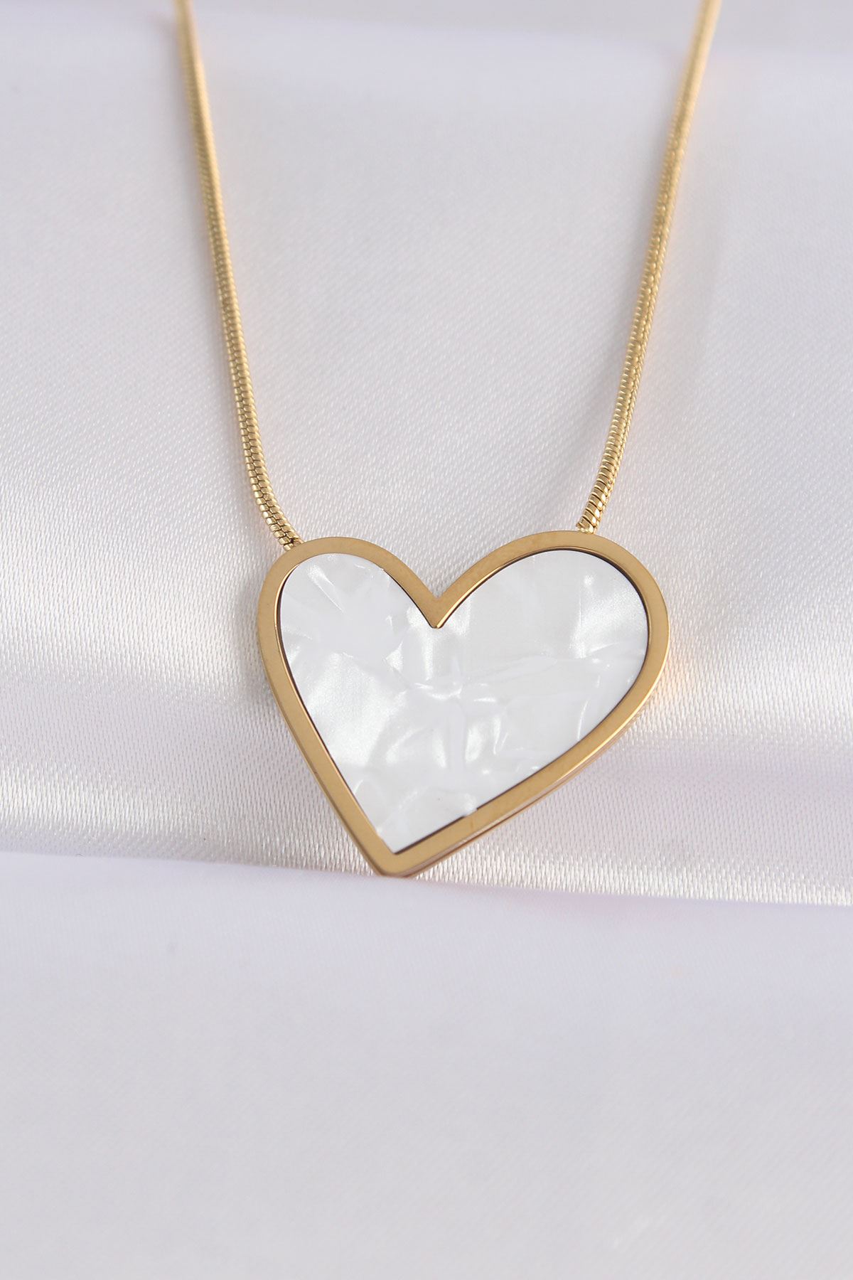 YRTCL 316L Çelik Zincir Altın Renk Mermer Desenli Kalp Kolye