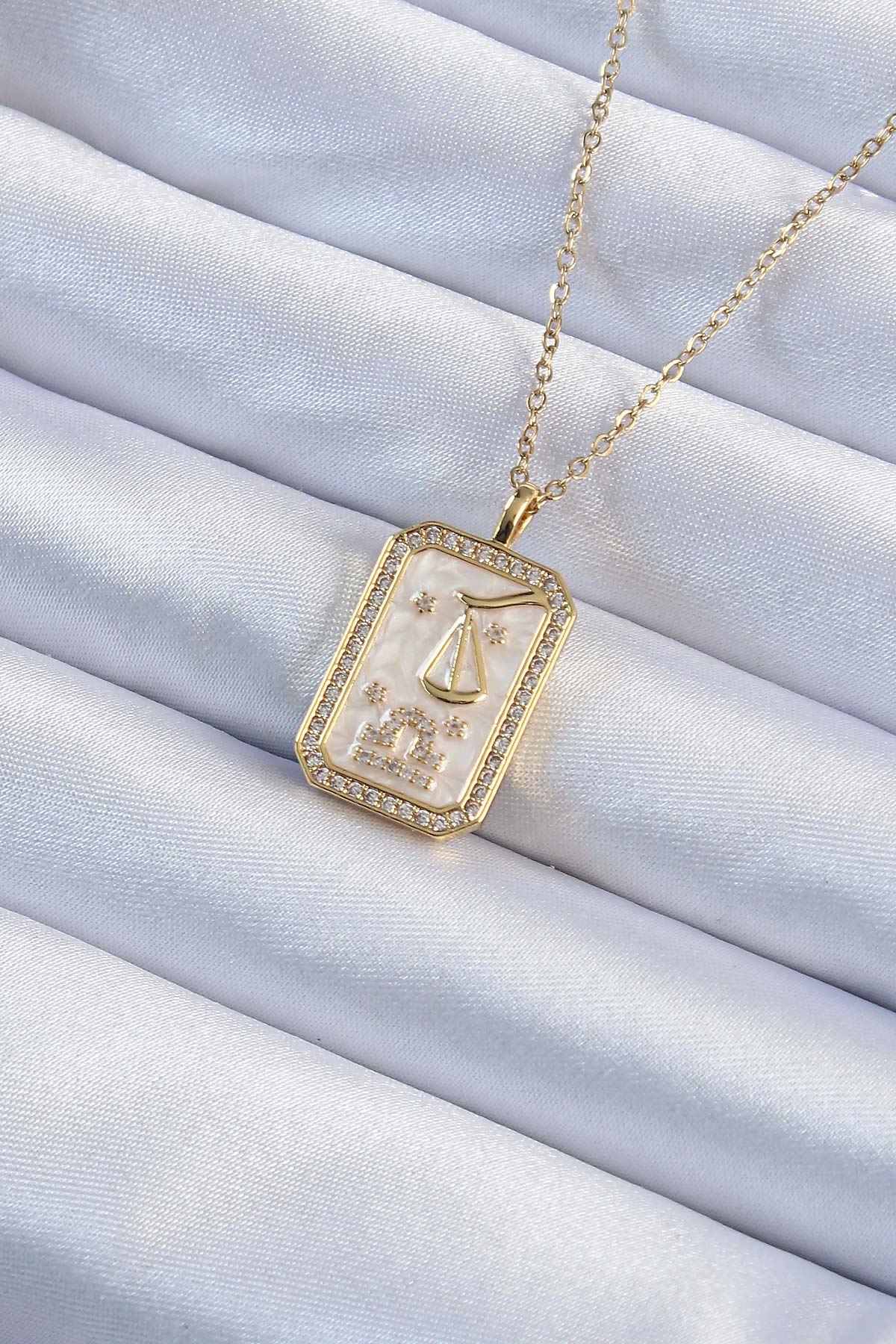 YRTCL 316L Çelik Zincir Altın Renk Zirkon Taşlı Çerçeveli Tarot Kolye