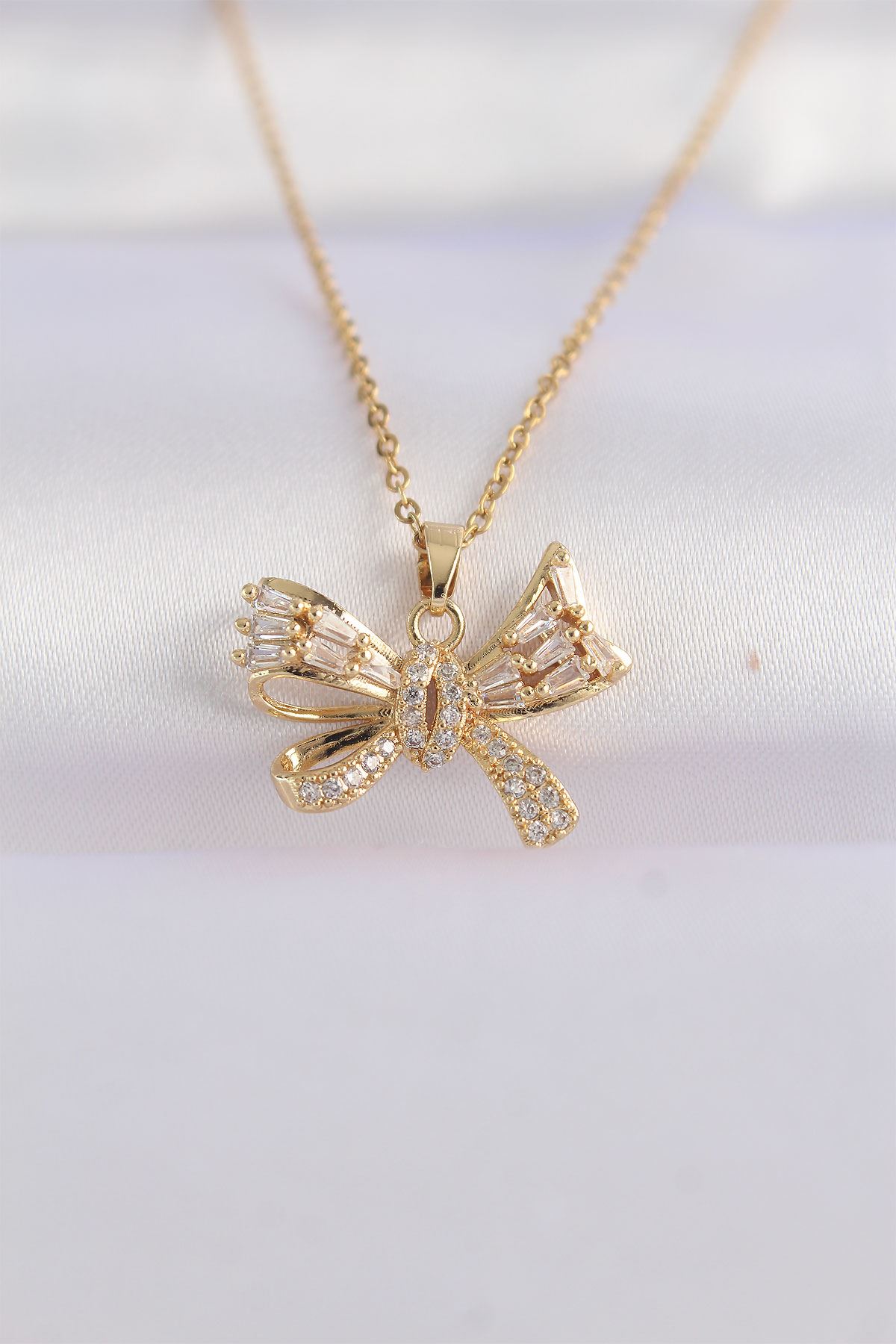 YRTCL 316L Çelik Zincir Altın Renk Zirkon Taşlı Fiyonk Kolye