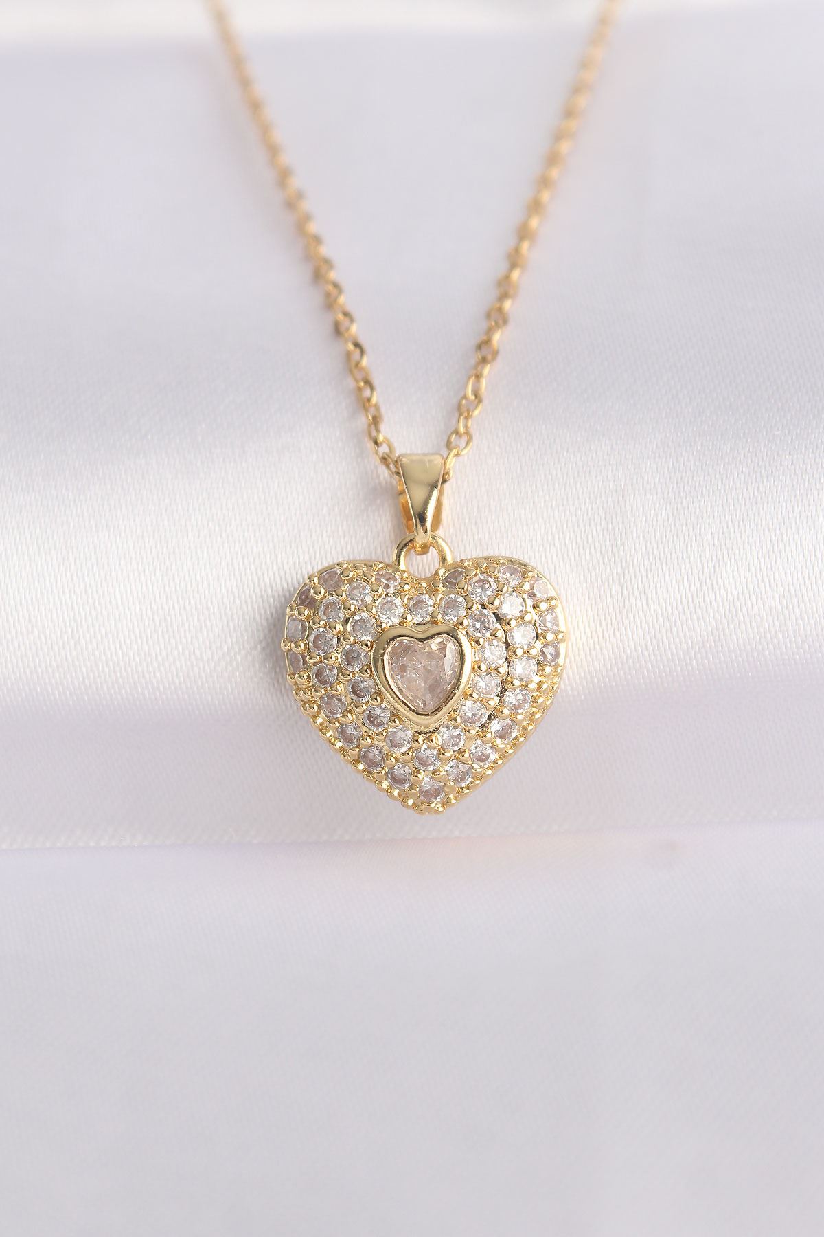YRTCL 316L Çelik Gold Renk Zincir Zirkon Taşlı Kalp Model Kadın Kolye