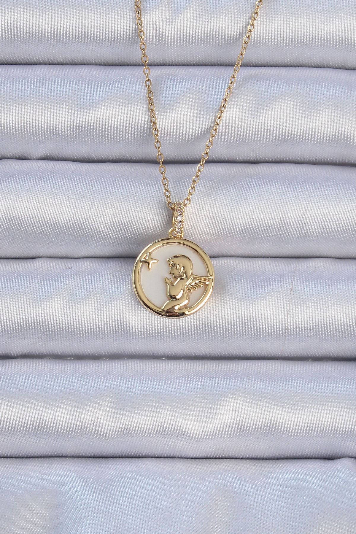 YRTCL 316L Çelik Zincir Altın Renk Zirkon Taşlı Mineli Melek Kolye