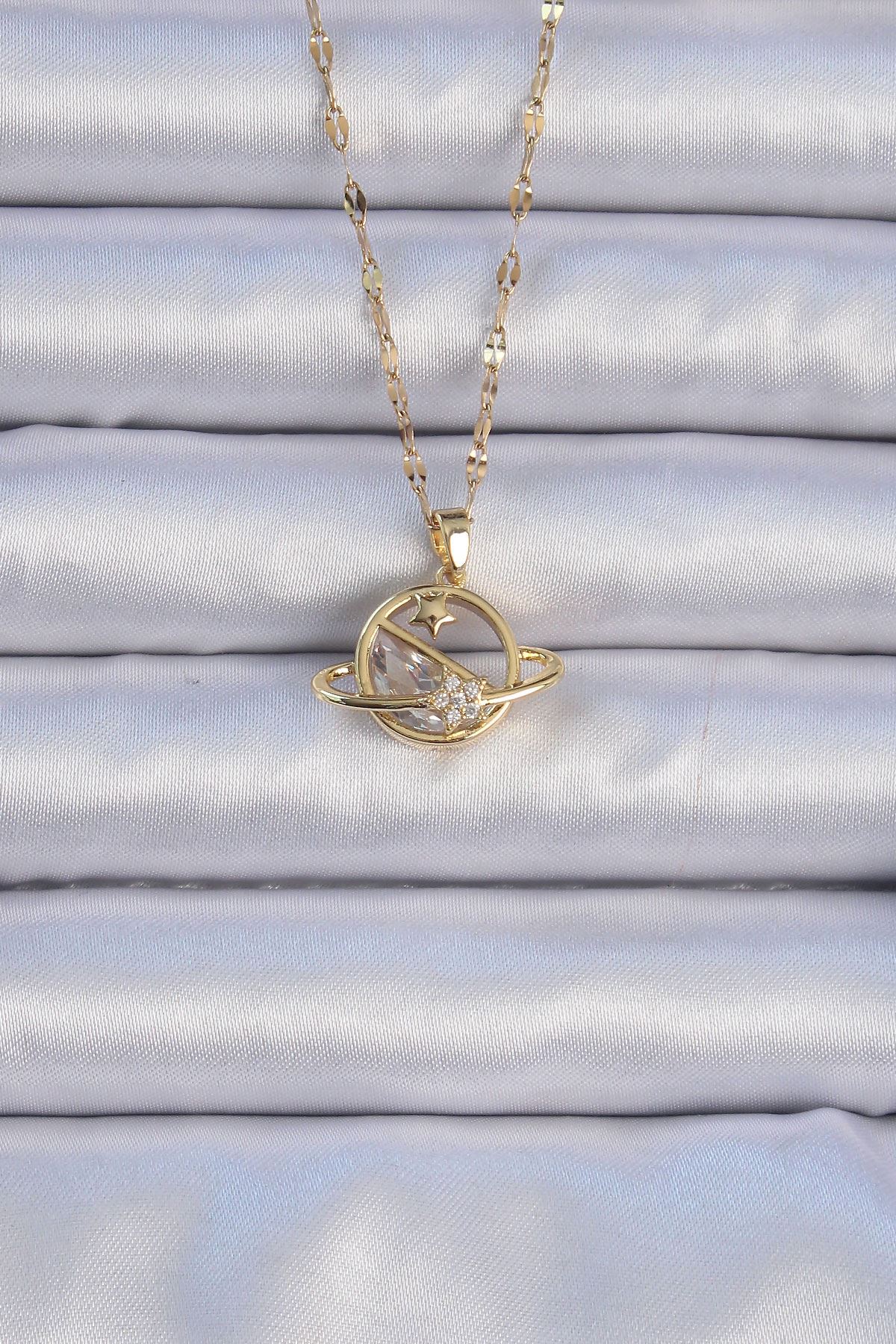 YRTCL 316L Çelik Zincir Altın Renk Zirkon Taşlı Yıldızlı Satürn Kolye
