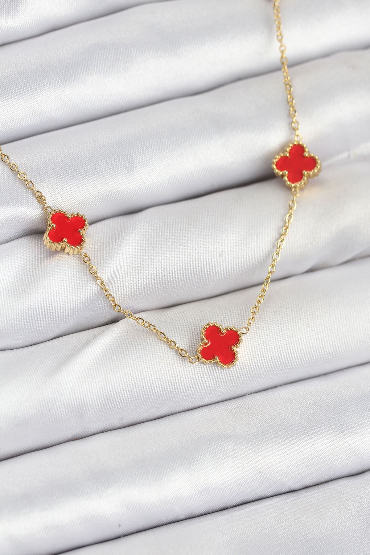 YRTCL 316L Çelik Zincir Gold Renk Kırmızı Baby Boy Yonca Kadın Kolye