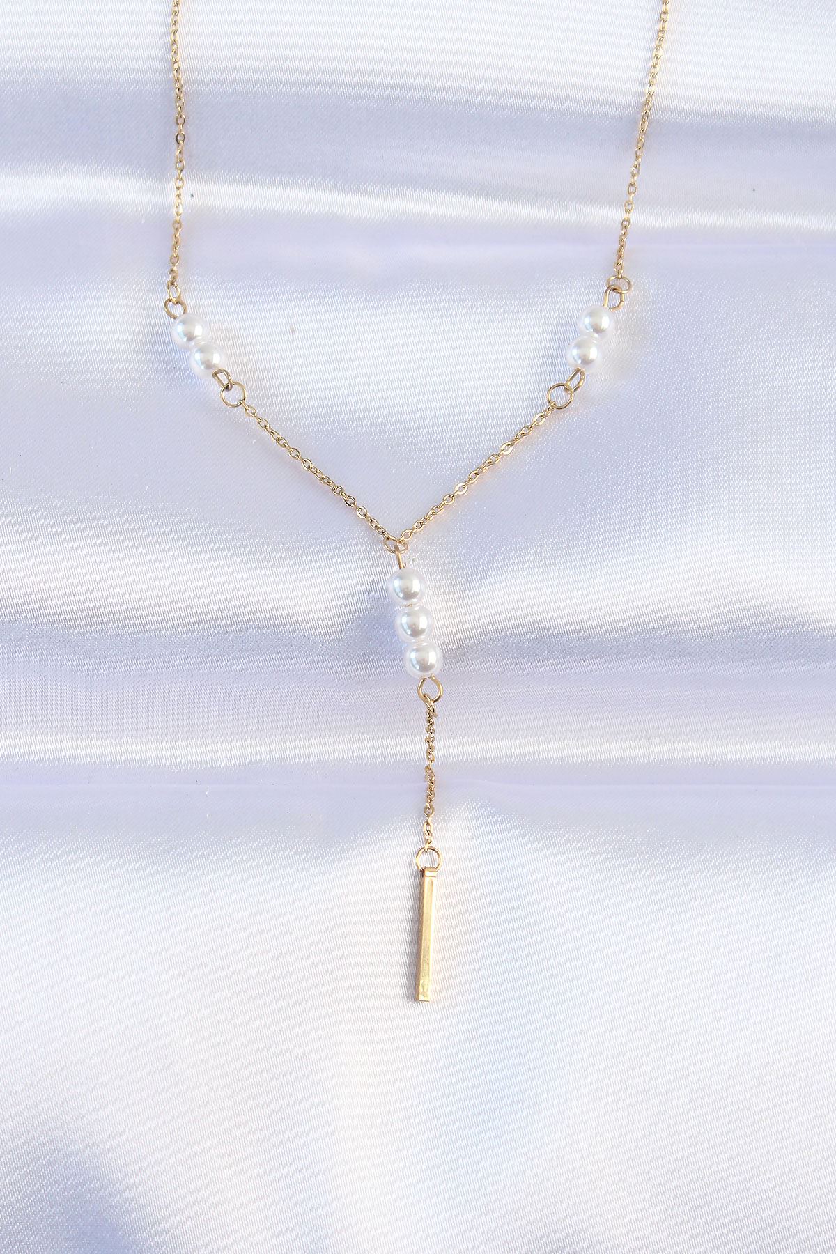 YRTCL 316L Çelik Zincir Gold Renk Minimal İnci Taşlı Sallantılı Kolye