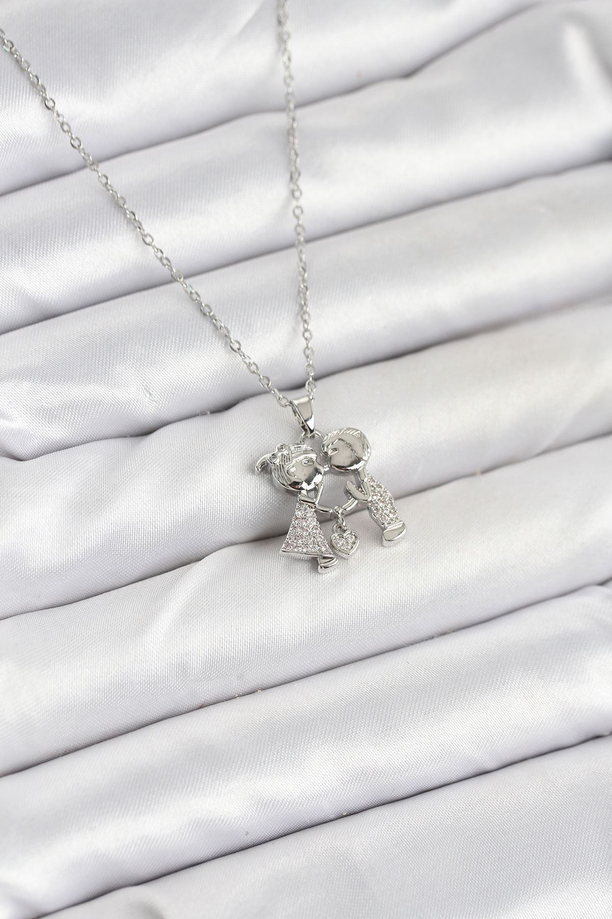 YRTCL 316L Çelik Zincir Gümüş Renk Zirkon Taşlı Kalp Model Melek Detay Kadın Kolye