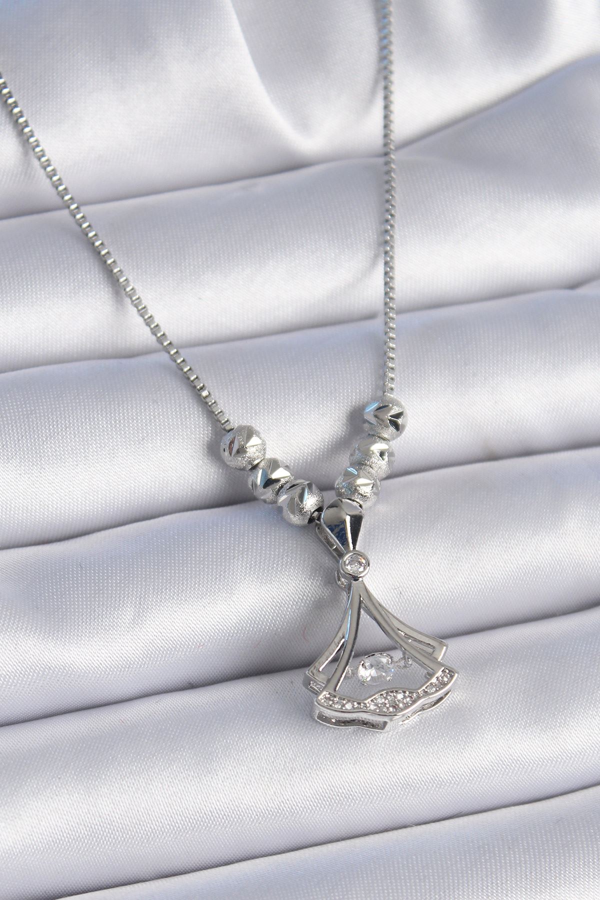 YRTCL 316L Çelik Zincir Gümüş Renk Gingko Yaprağı Model Zirkon Taş Detay Kadın Kolye