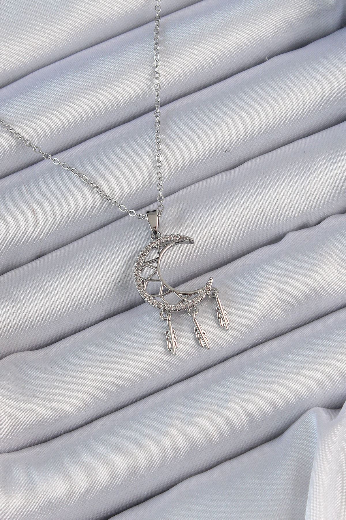 YRTCL 316L Çelik Zincir Gümüş Renk İşlemeli Zirkon Taşlı Ay Kolye
